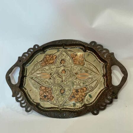 Vintage διακοσμητικός χάλκινος δίσκος 48x31 με οξειδώσεις