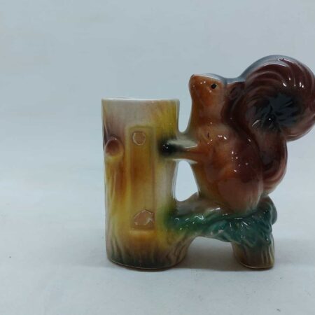 Vintage κεραμικό επιτραπέζιο διακοσμητικό βάζο με σκίουρο 13x12,5x5cm