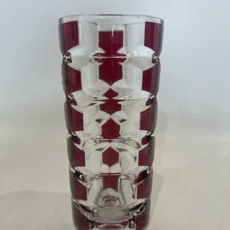 Vintage κρυστάλλινο βάζο με ανάγλυφα γεωμ. σχέδια 22x8cm