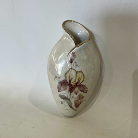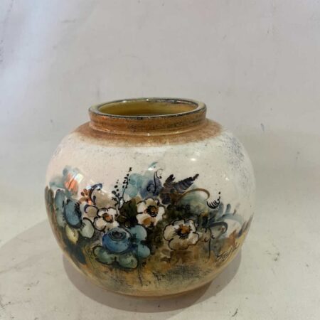 Vintage διακοσμητικό κεραμικό βάζο με ζωγραφισμένα λουλούδια 26x7