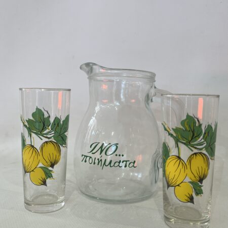 Σετ καράφα κρασιού με 2 ποτήρια, ζωγραφισμένα στο χέρι