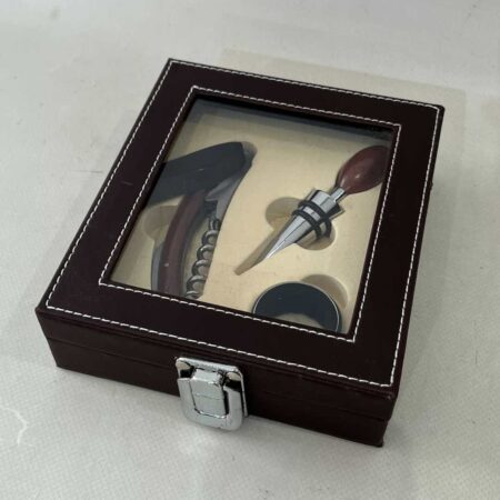 Σετ αξεσουάρ κρασιού σε δερμάτινη θήκη.
