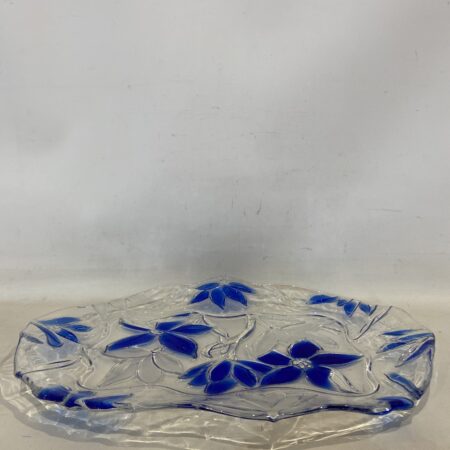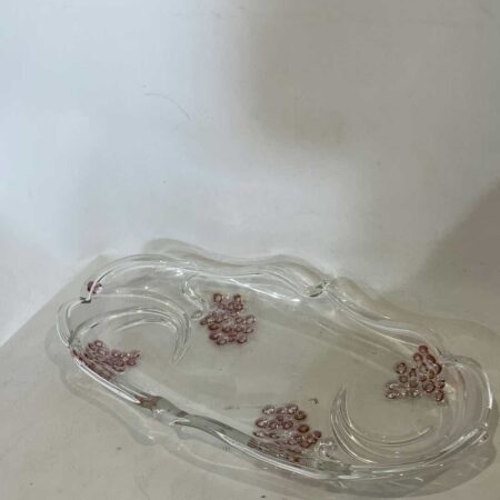 Vintage κρυστάλλινη πιατέλα με ανάγλυφα λουλούδια 42x32