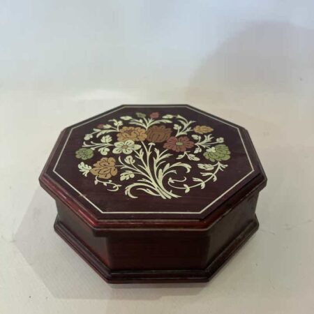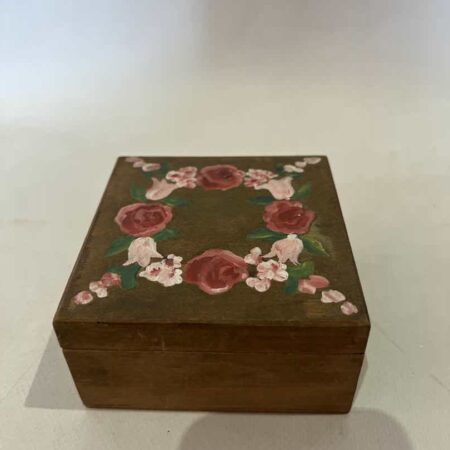 Vintage ξύλινη φοντανιέρα με ανάγλυφα σχέδια και καπάκι 9x16