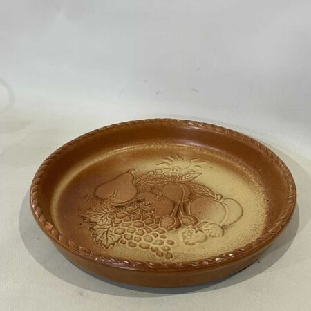 Vintage πήλινη πιατέλα με ανάγλυφα σχέδια φρούτων 4,5x24