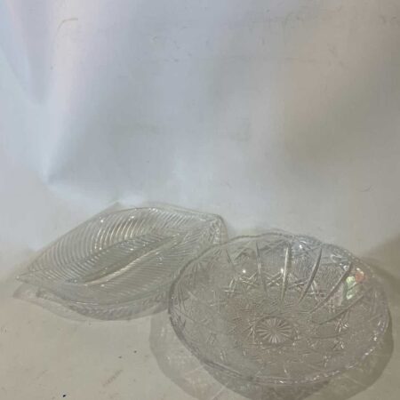 Vintage σετ 2 κρυστάλλινες πιατέλες με σκαλιστά σχέδια 3x23x28,6x22