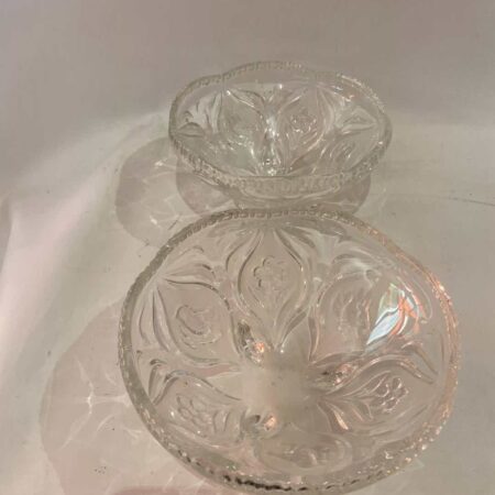 Vintage σετ 2 κρυστάλλινες φοντανιέρες με σκαλιστά σχέδια 5x11,6x11