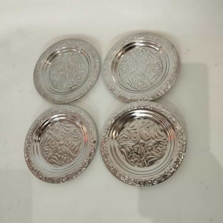 Vintage σετ 4 διακοσμητικά μεταλλικά πιατάκια παλιάς εποχής 11,5x11,5 2