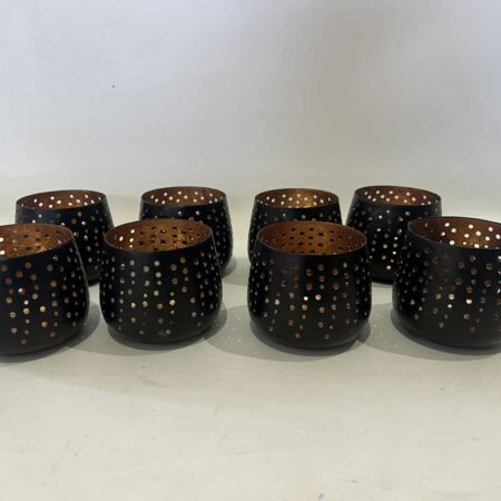 Vintage σετ 8 γυάλινα χαμηλά ποτήρια ραβδωτά 8x6cm
