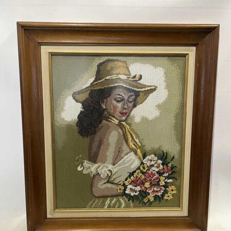 Κεντητός πίνακας εποχής με σκαλιστή κορνίζα 77x131