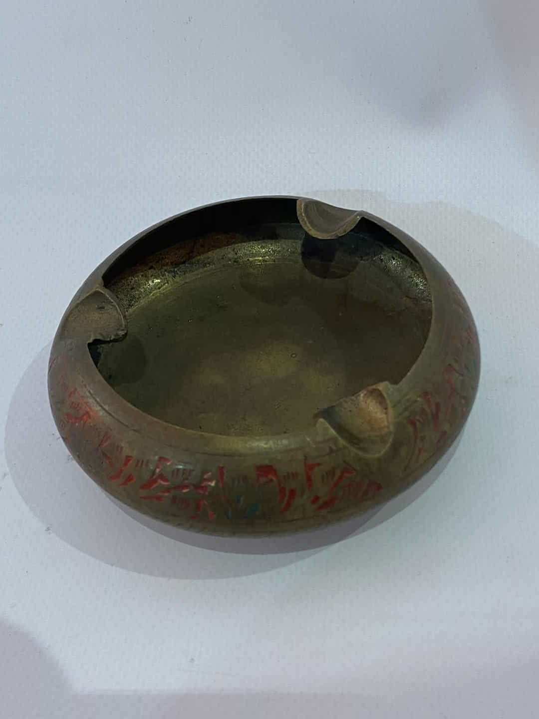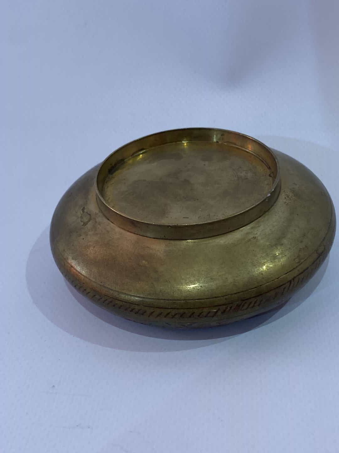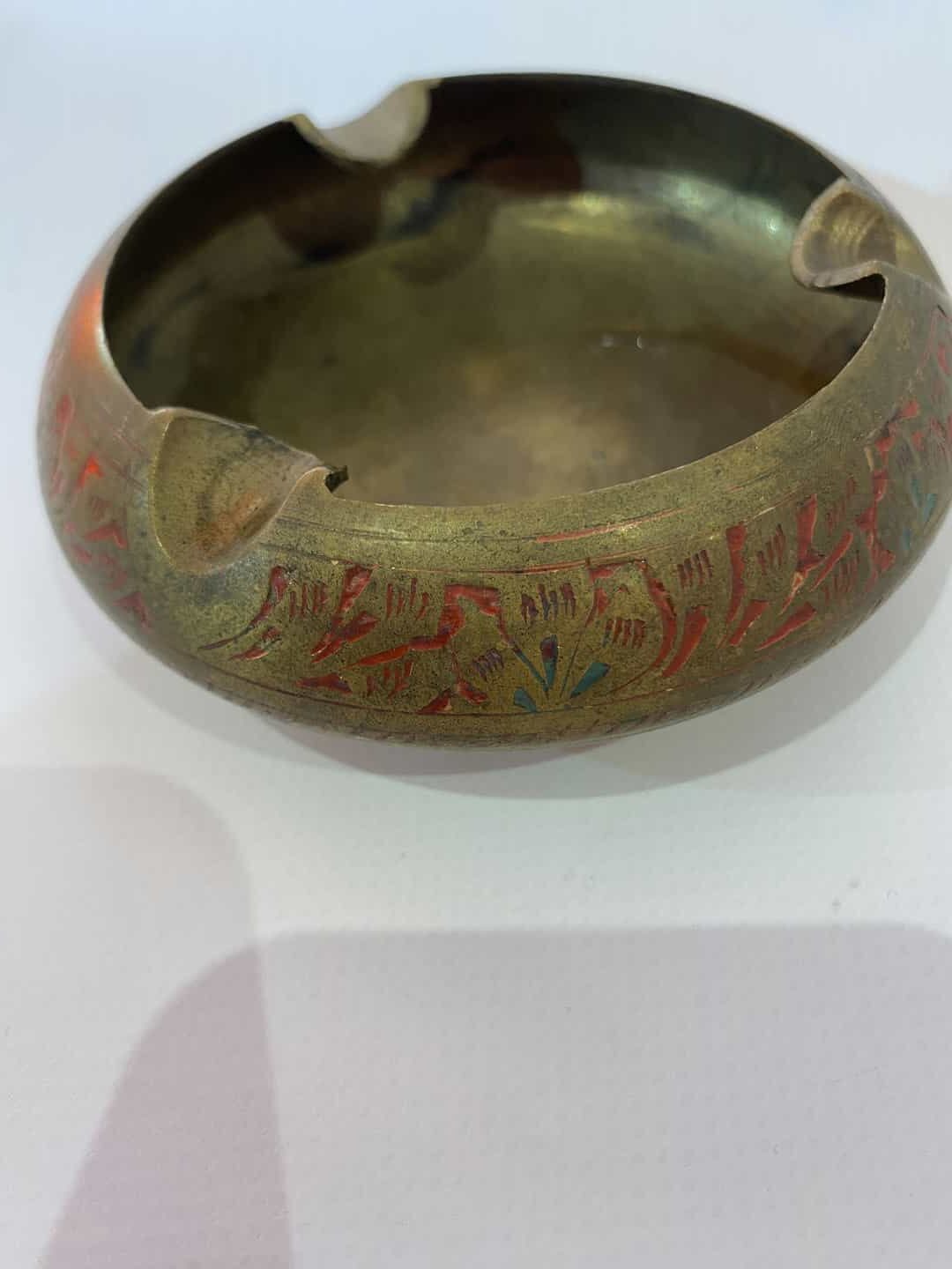 Αντίκα μπρούντζινο σταχτοδοχείο με σκαλιστά σχέδια 3×10
