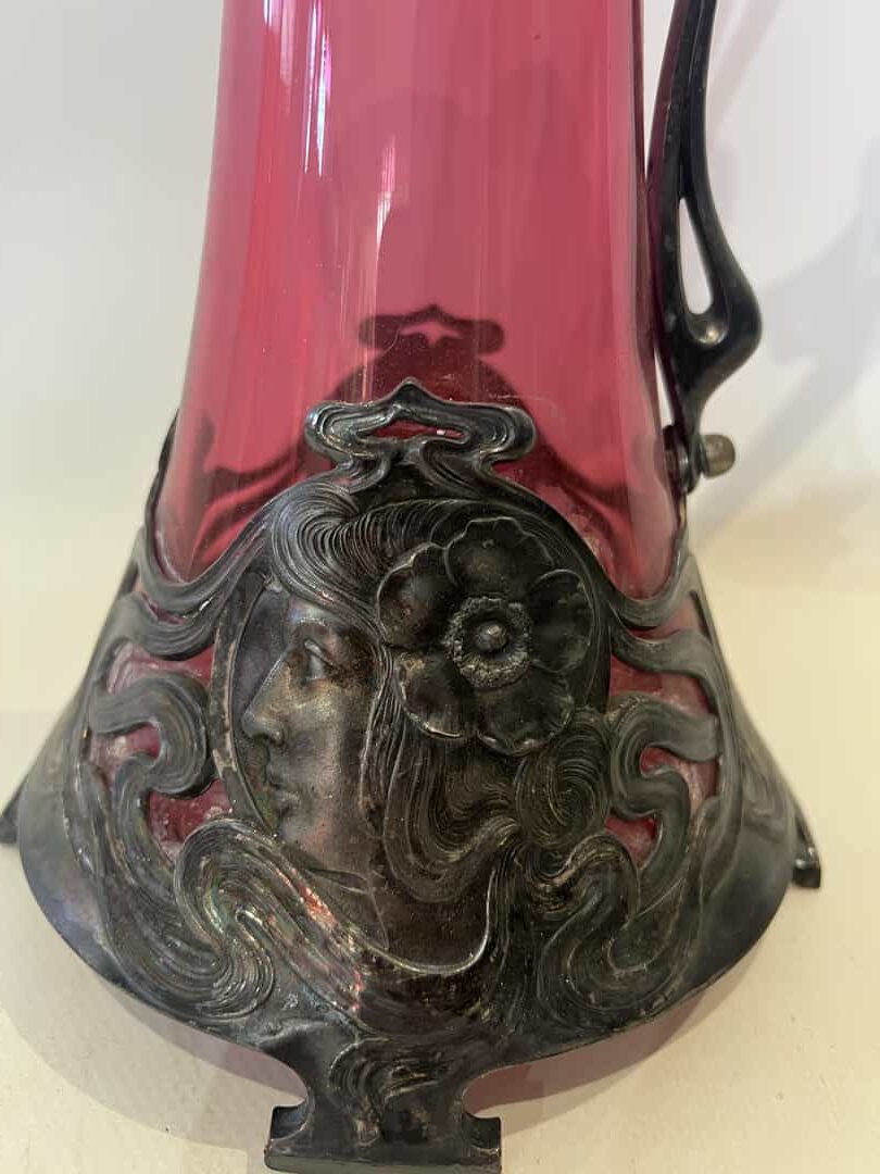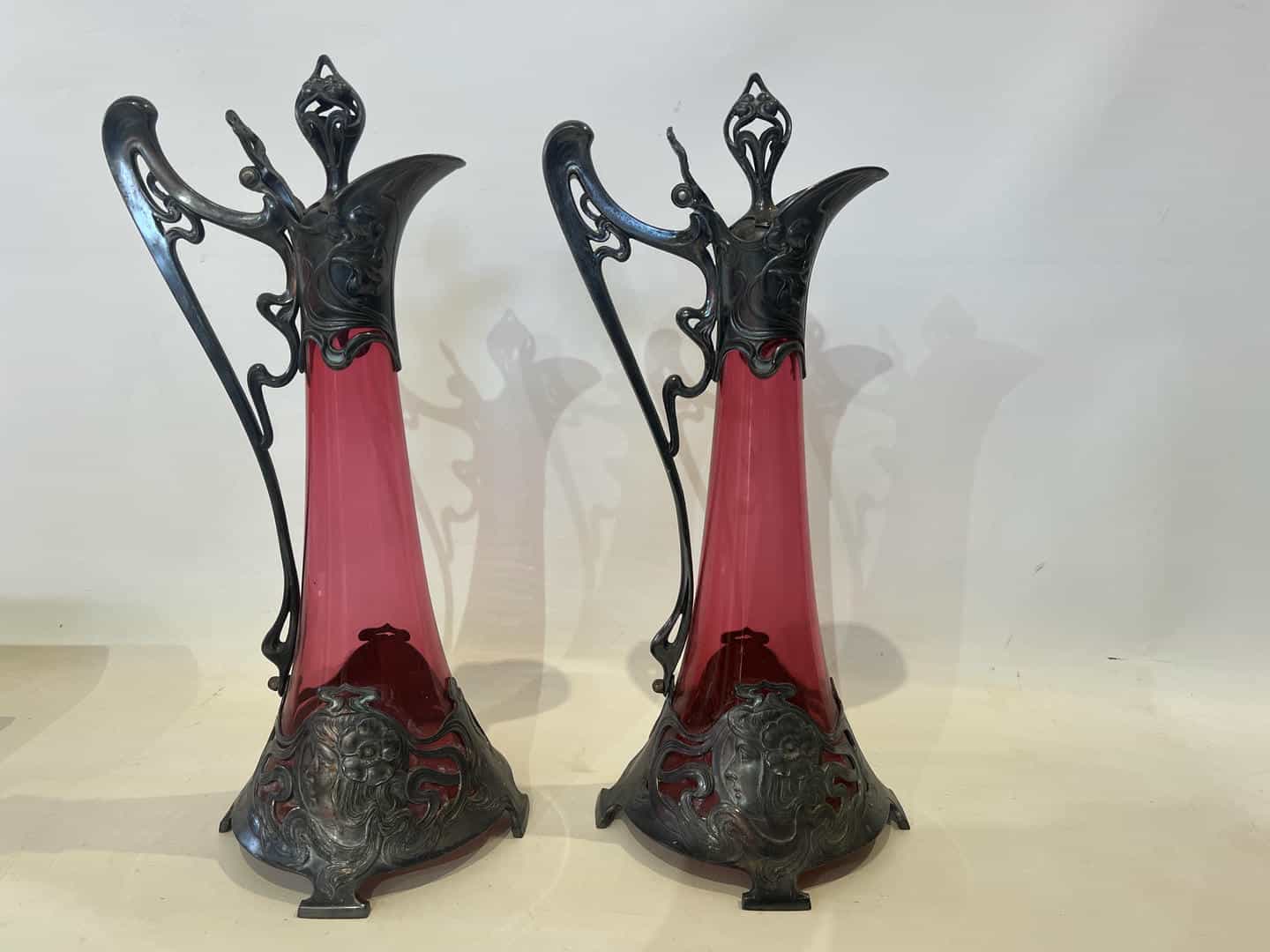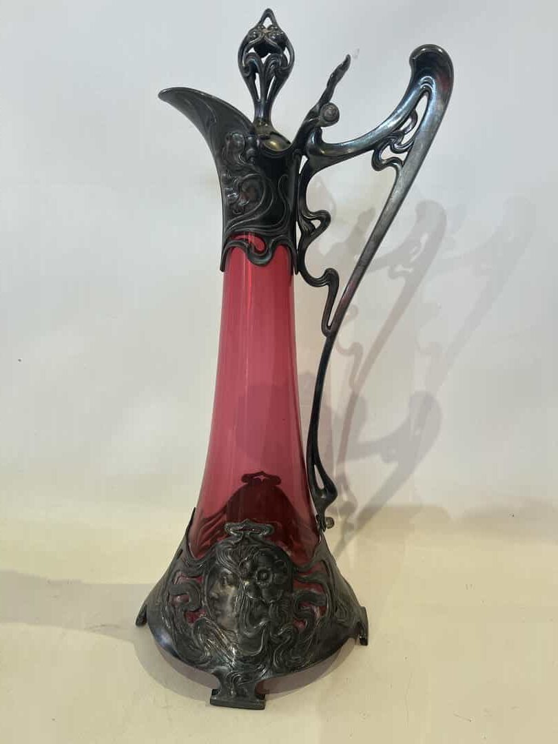 Αντίκα σετ 2 καράφες από Κασσίτερο Art Nouveau με σχέδιο “Donna” του Albert Mayer με σφραγίδα 41×18  Κωδικός προϊόντος: #s15553