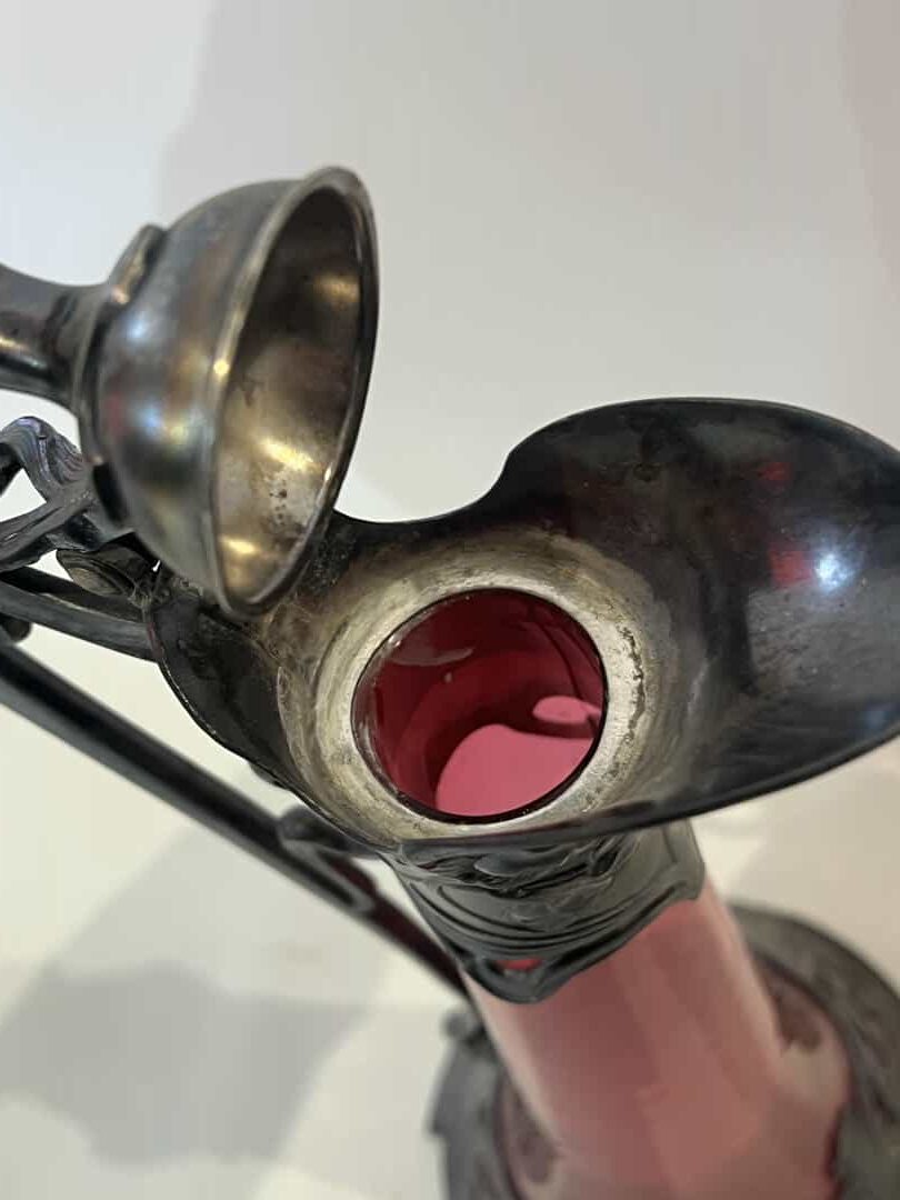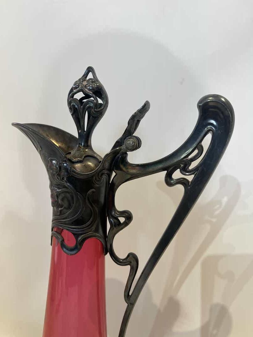 Αντίκα σετ 2 καράφες από Κασσίτερο Art Nouveau με σχέδιο “Donna” του Albert Mayer με σφραγίδα 41×18