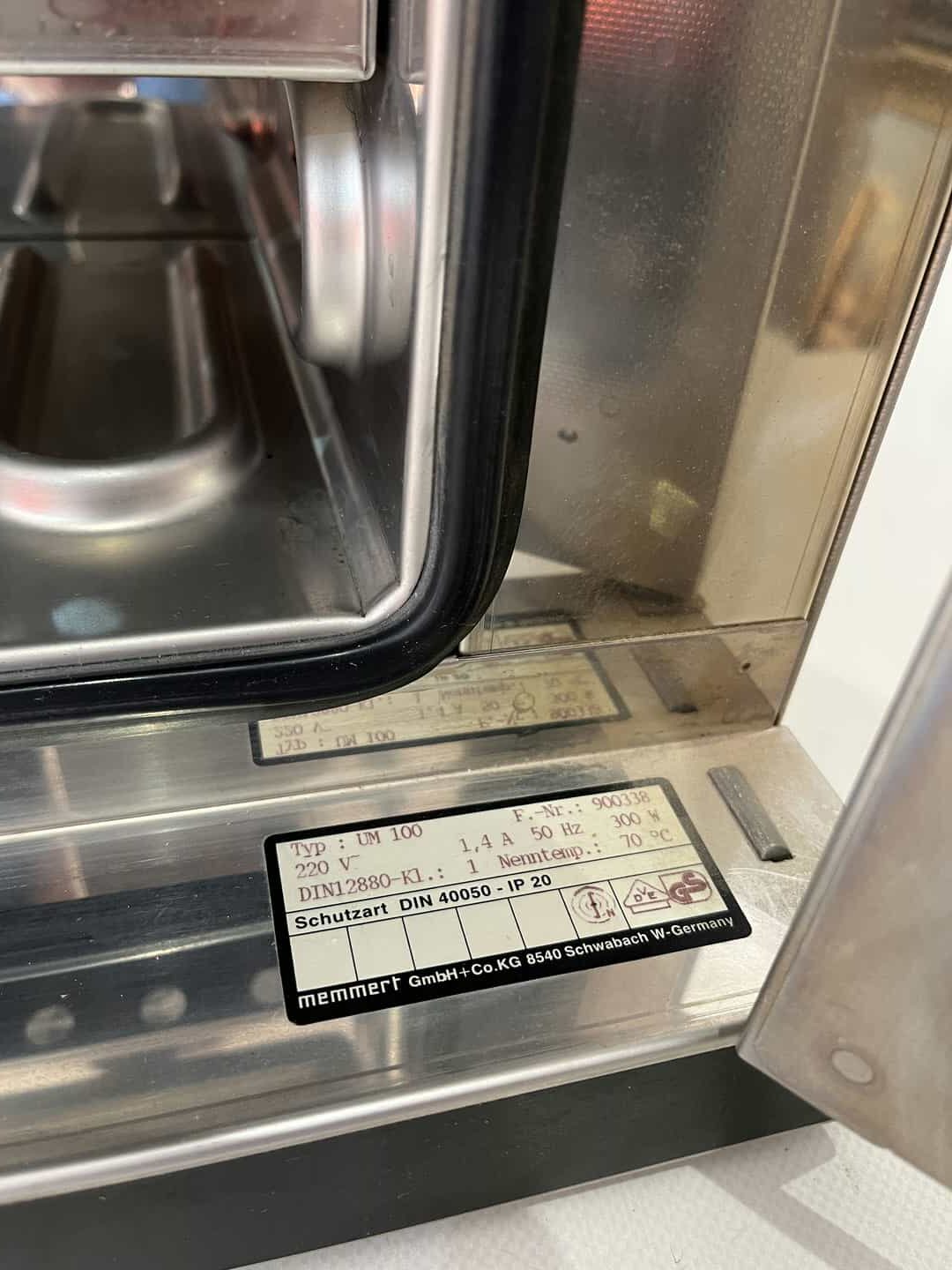 Αποστειρωτής θερμού αέρα Memmert 100 , Type: UM100 , 220V , 1,4A , 50Hz , 300W . Μέγιστη Θερμοκρασία: 70 βαθμοί Κελσίου 52x47x32 Κωδικός προϊόντος: #s9070