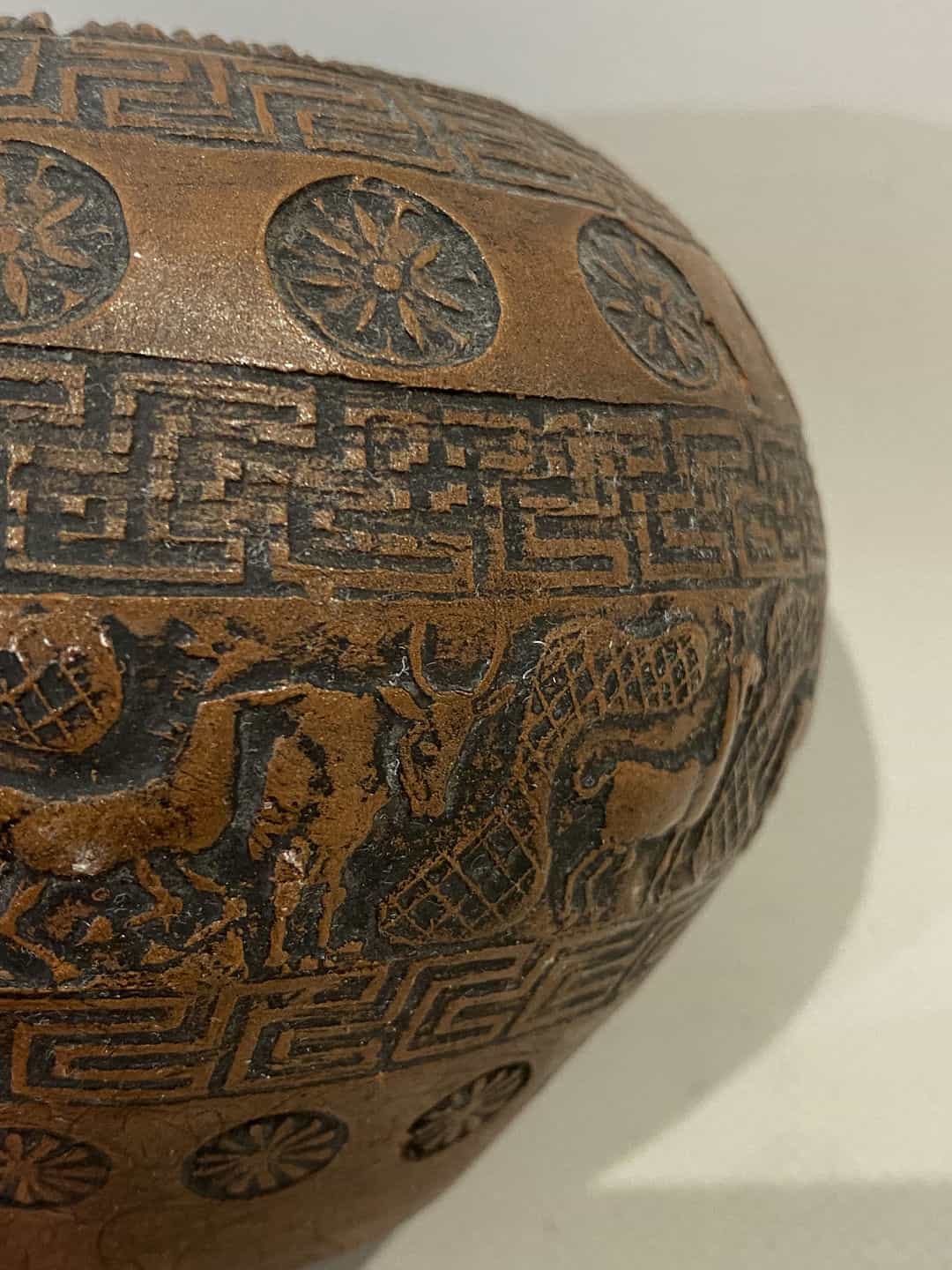Αρχαίο ελληνικό κεραμικό βάζο με ανάγλυφα σχέδια 12×7