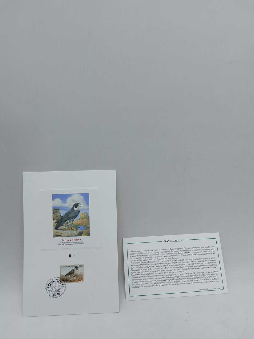 Γραμματόσημα των Ηνωμένων Εθνών, Γενεύη, έτος 1993, για τα απειλούμενα είδη- Ιέραξ ο ξένος (μέσα σε πλαστικό διάφανο φάκελο) Κωδικός προϊόντος: #s7357