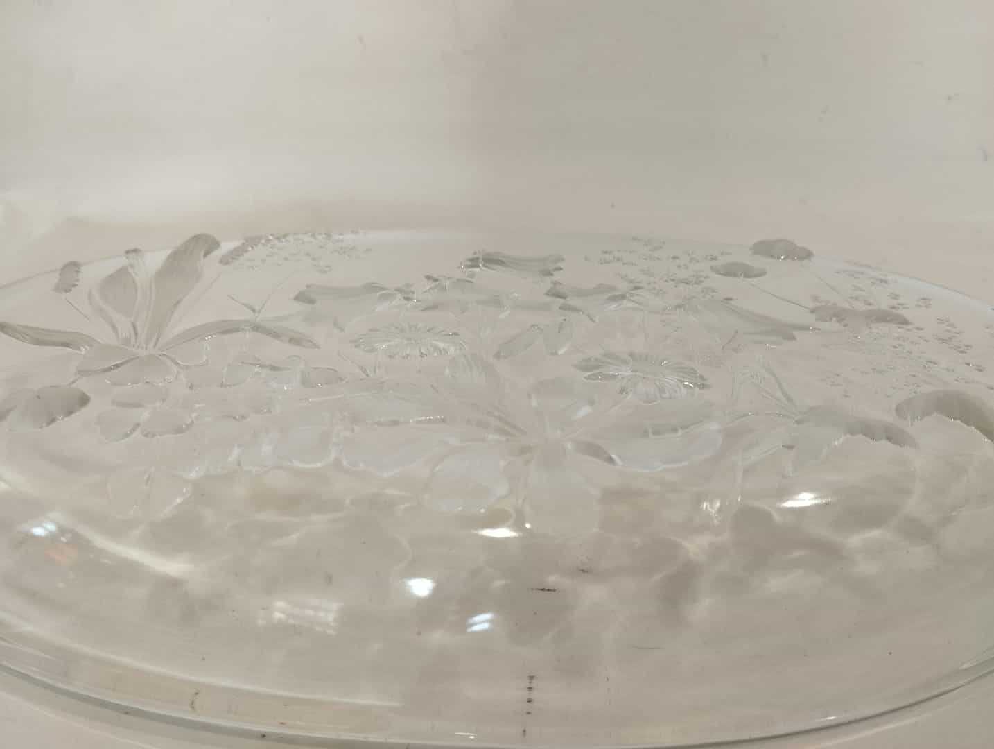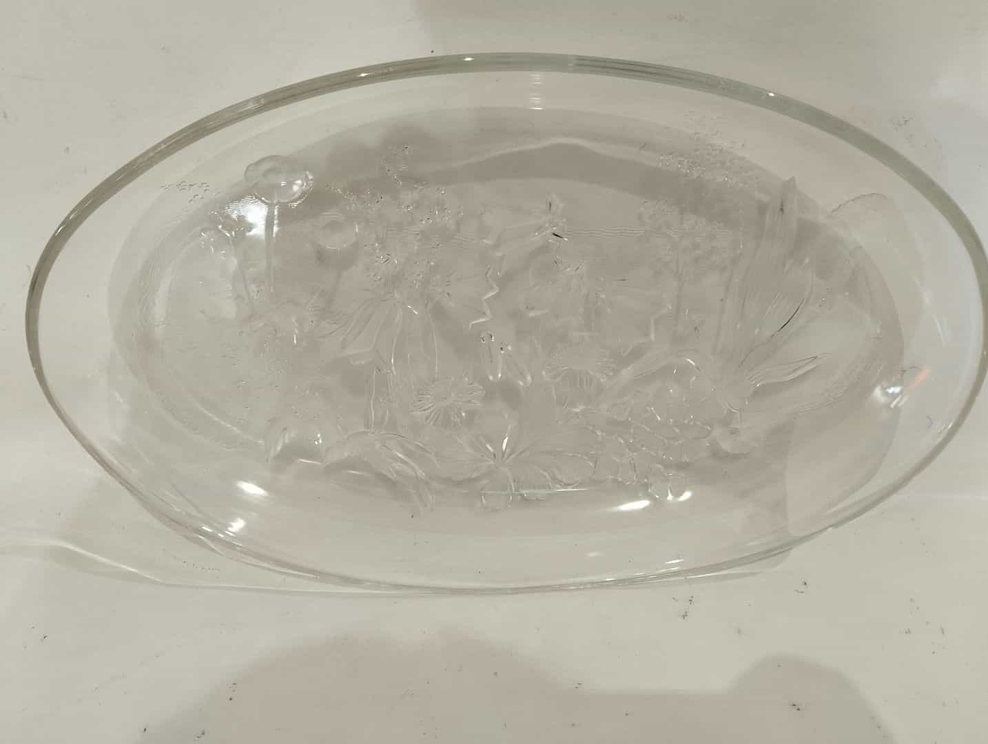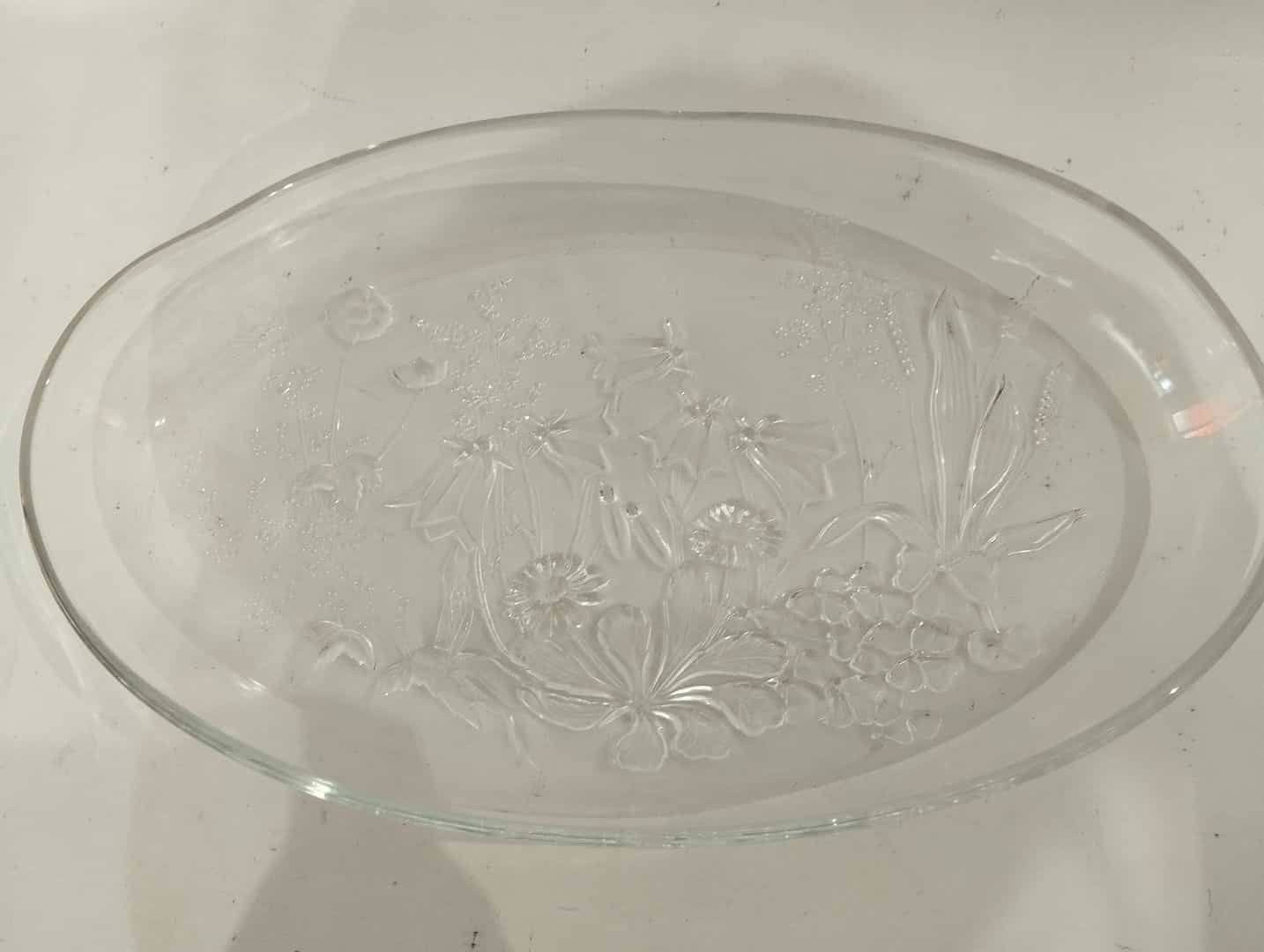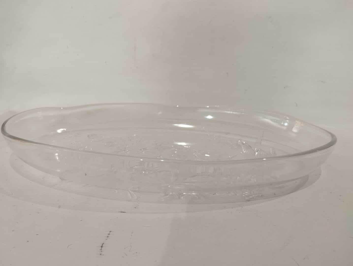 Γυάλινη βαθιά πιατέλα με σκαλιστά λουλούδια. 35x21x4