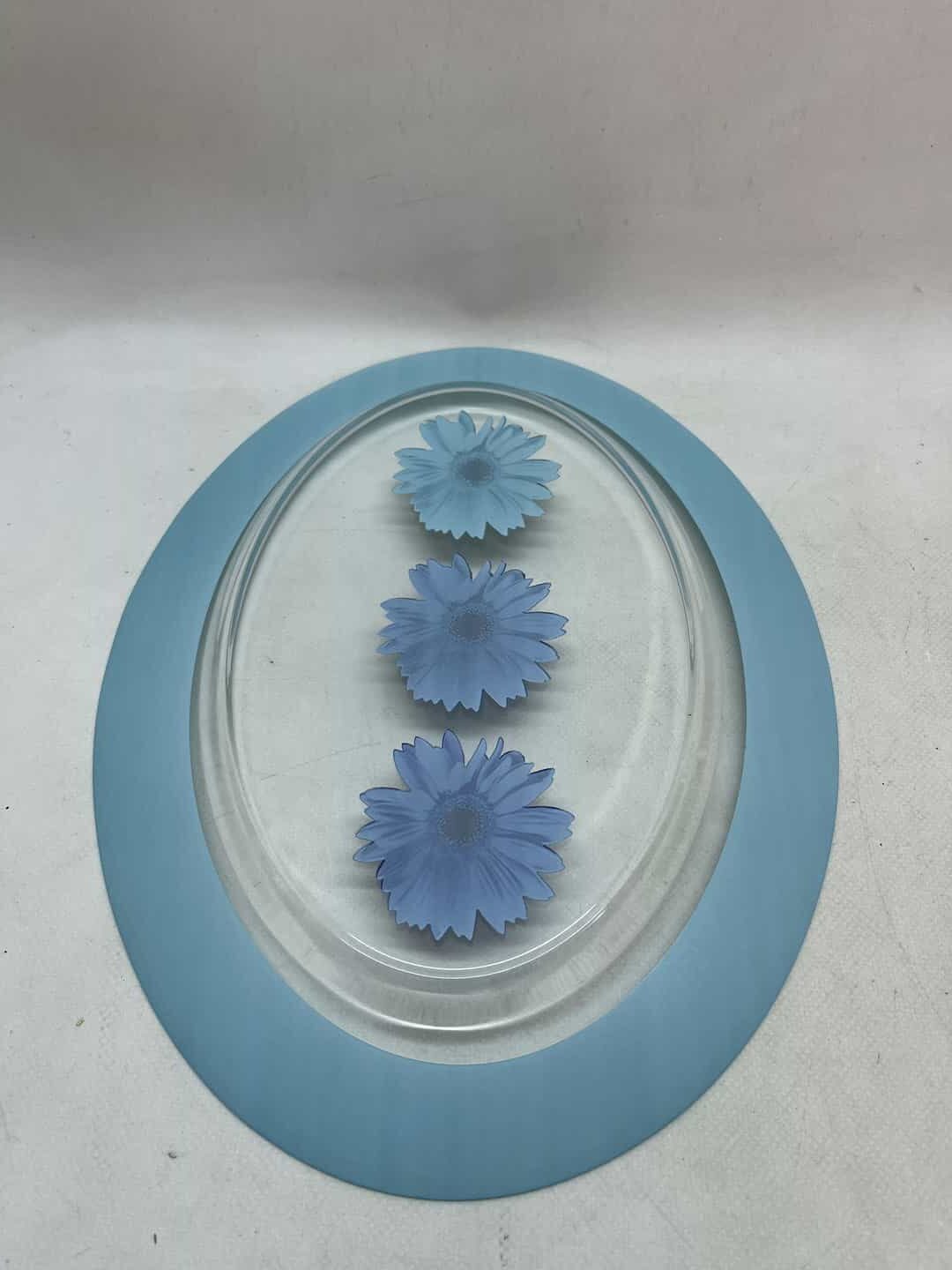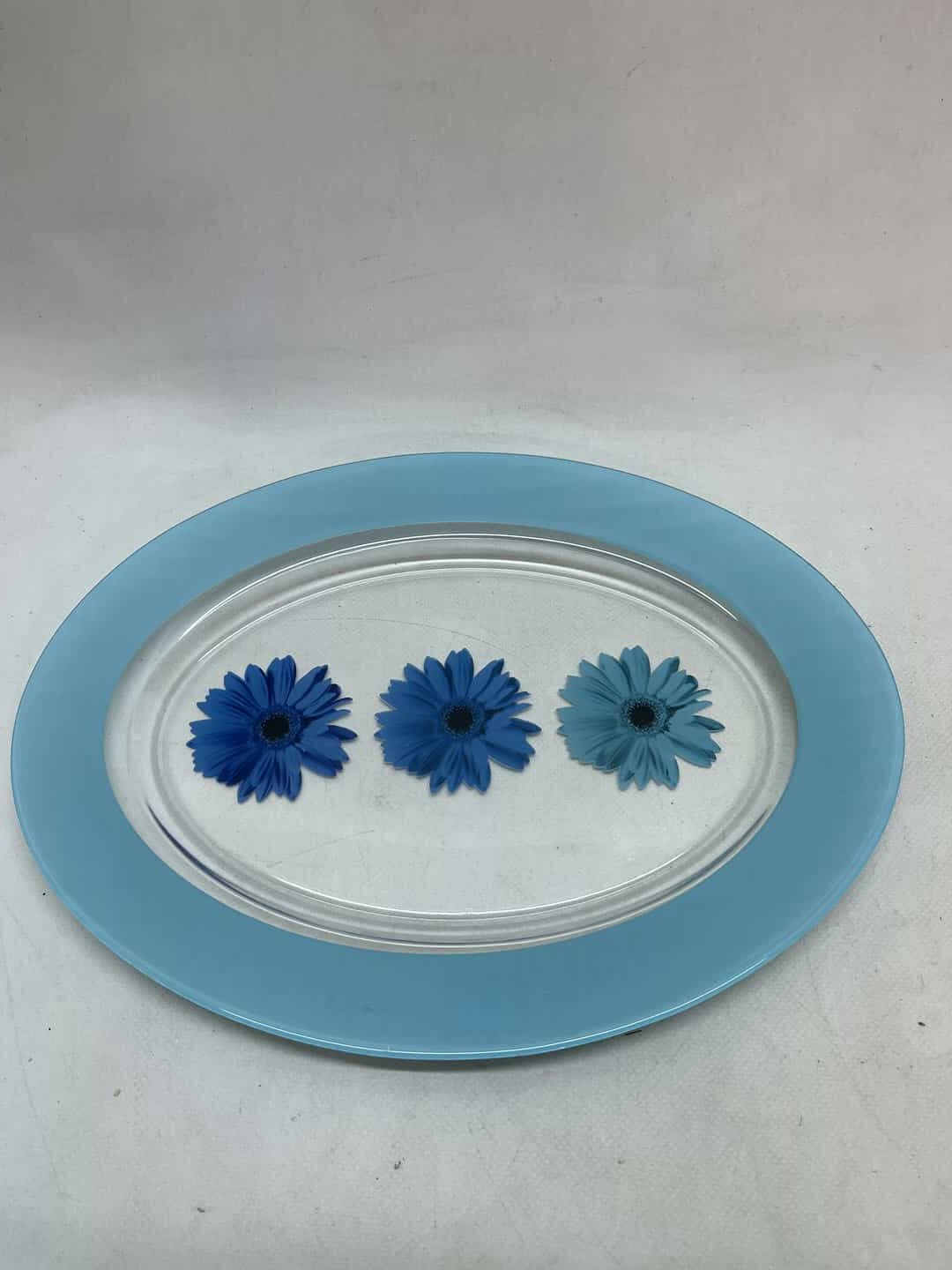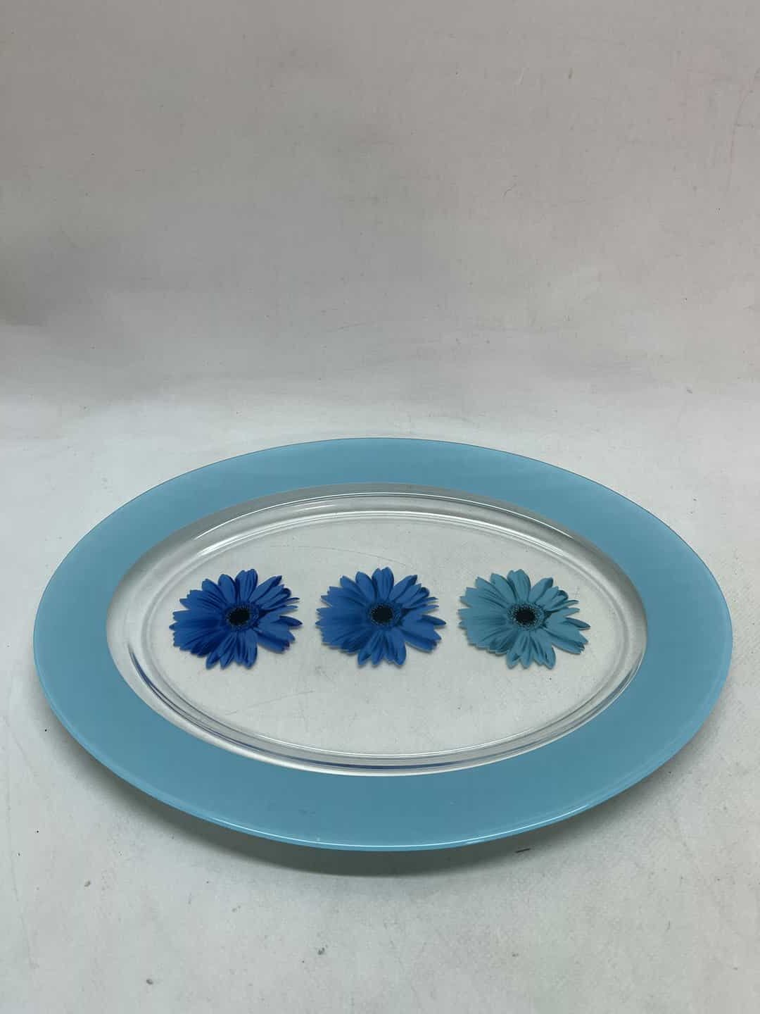 Γυάλινη διακοσμητική πιατέλα με μπλε λουλούδια 34×26