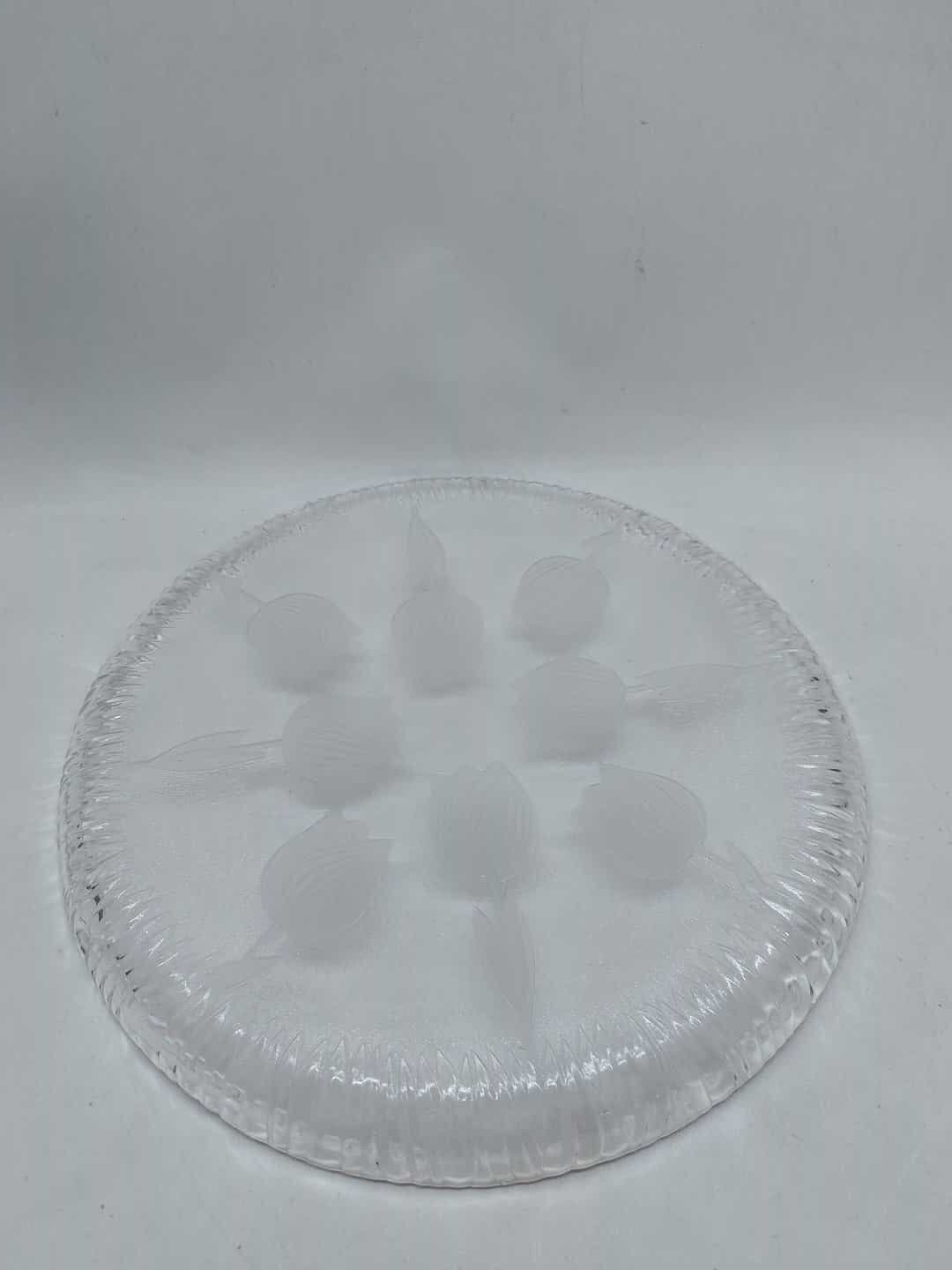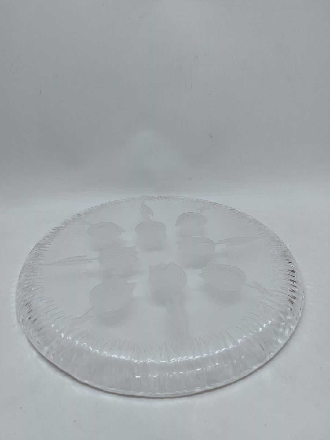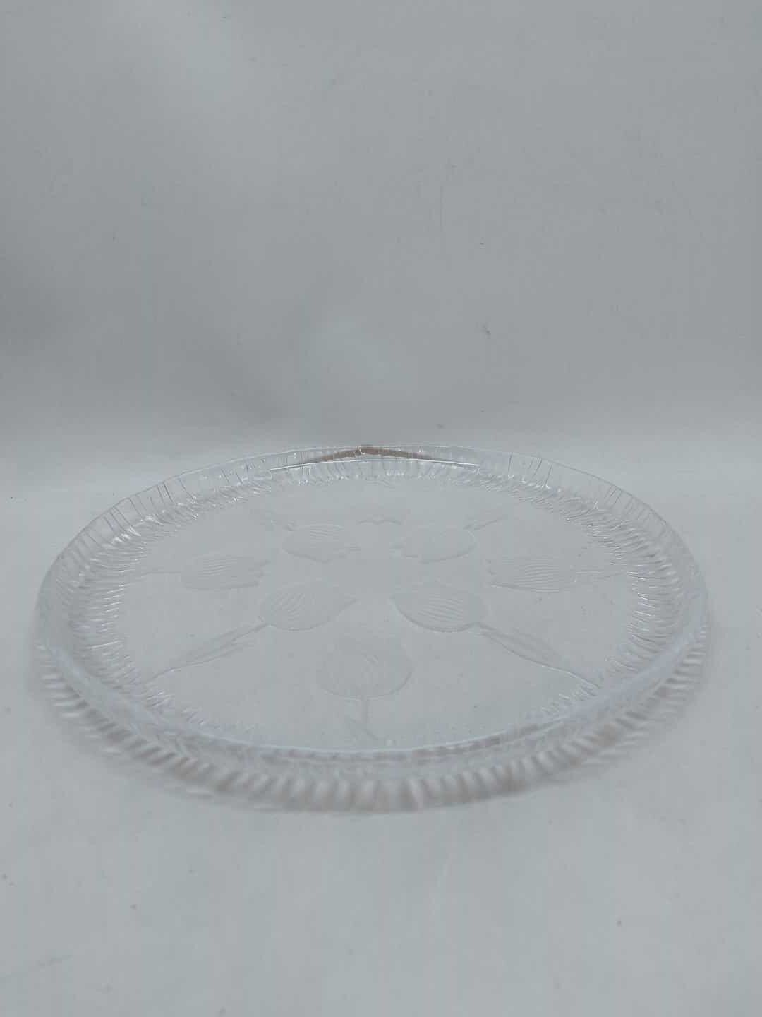 Γυάλινη στρόγγυλη πιατέλα σερβιρίσματος με σκαλιστά λουλούδια 3x33cm
