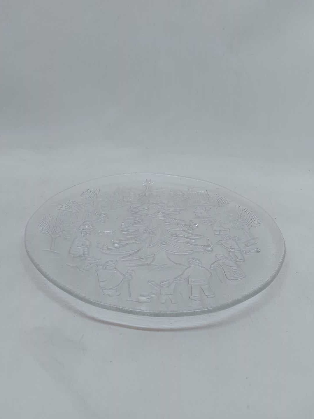 Γυάλινη χριστουγεννιάτικη διακοσμητική πιατέλα με σκαλιστά σχέδια 31,5cm