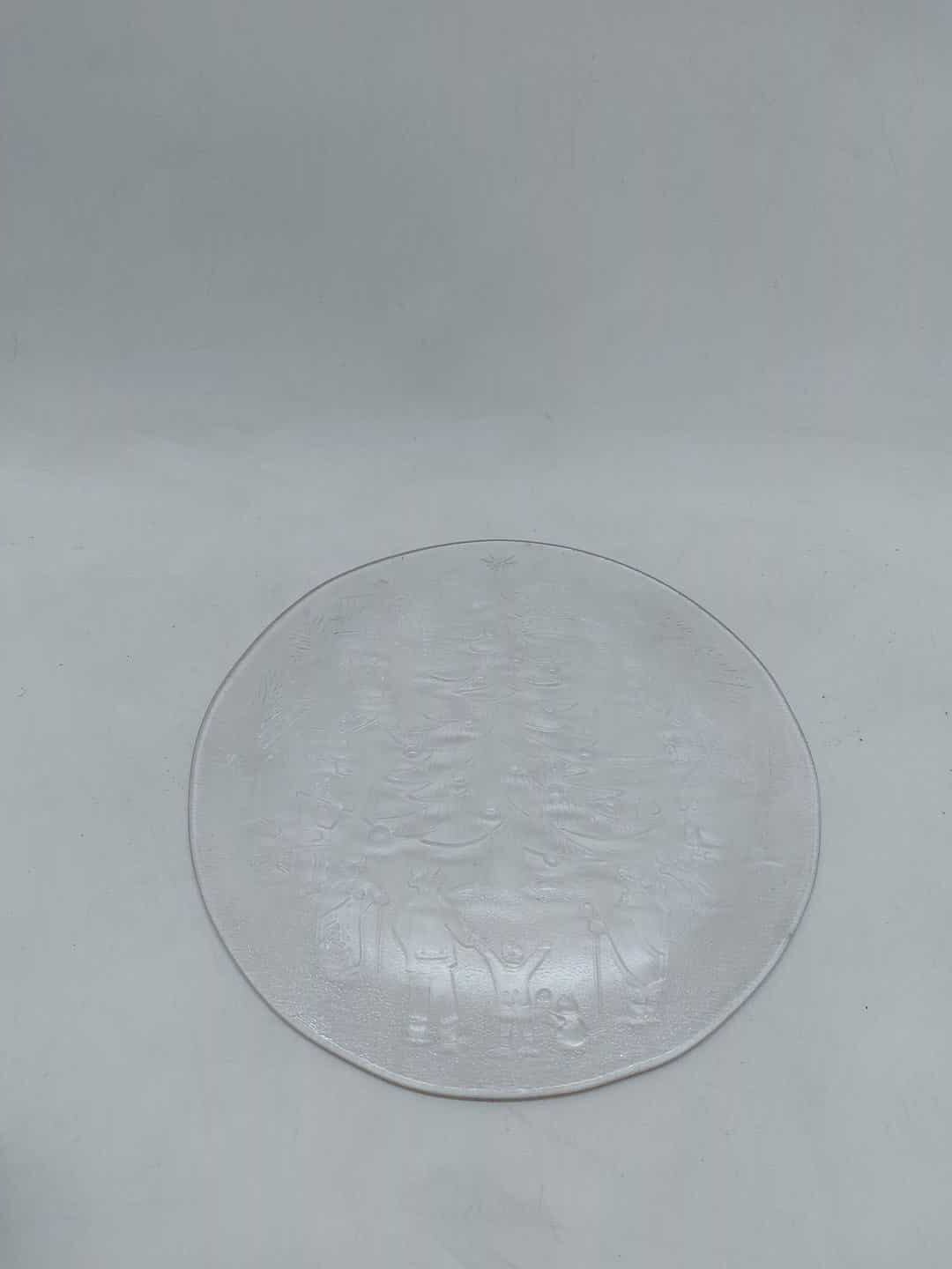 Γυάλινη χριστουγεννιάτικη διακοσμητική πιατέλα με σκαλιστά σχέδια 31,5cm Κωδικός προϊόντος: #s6091