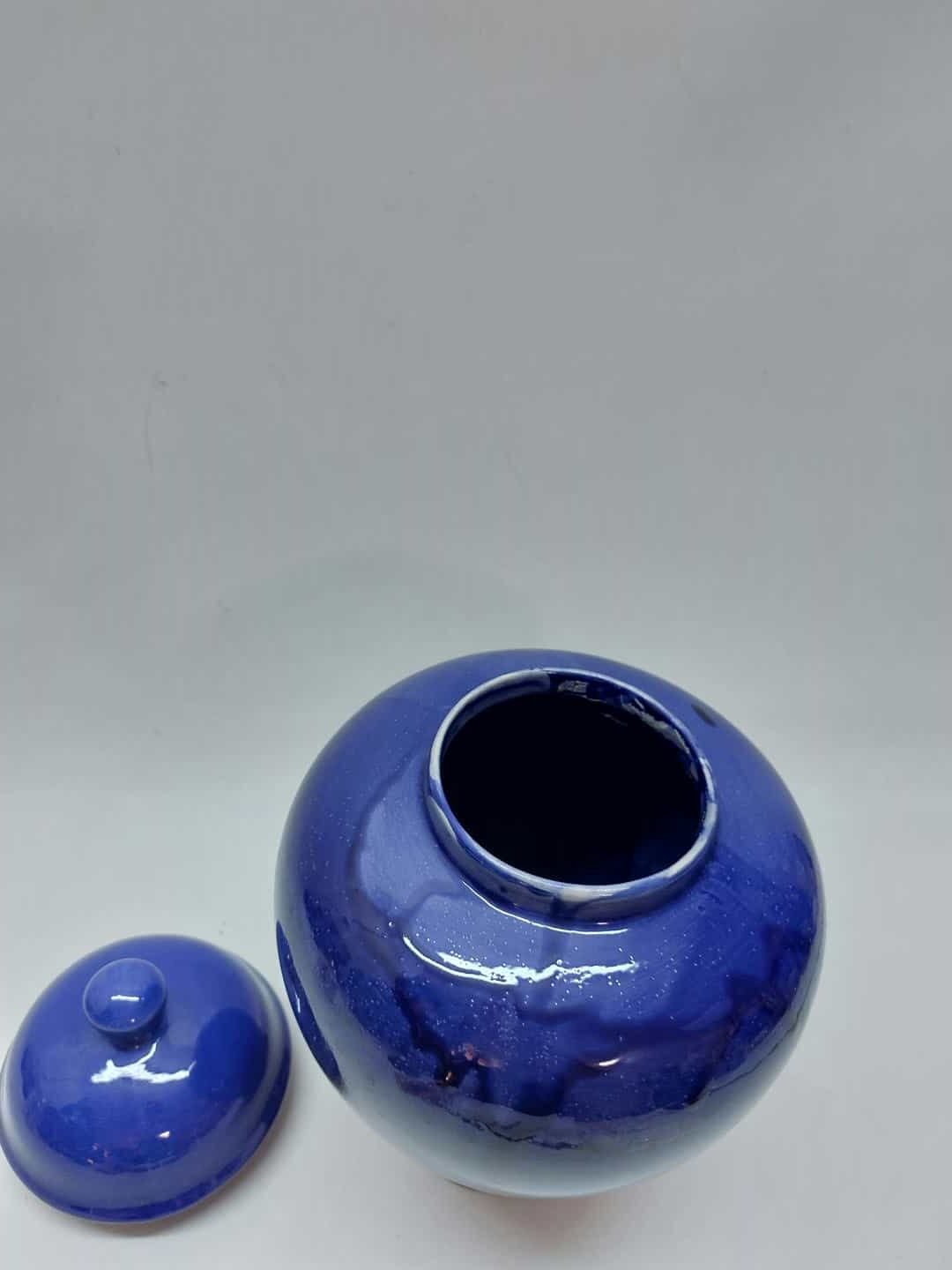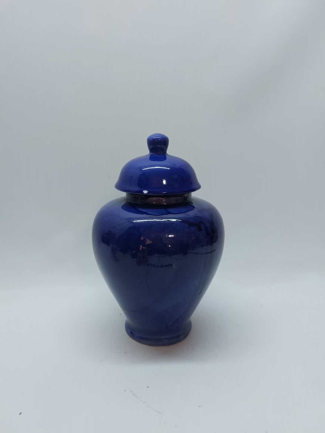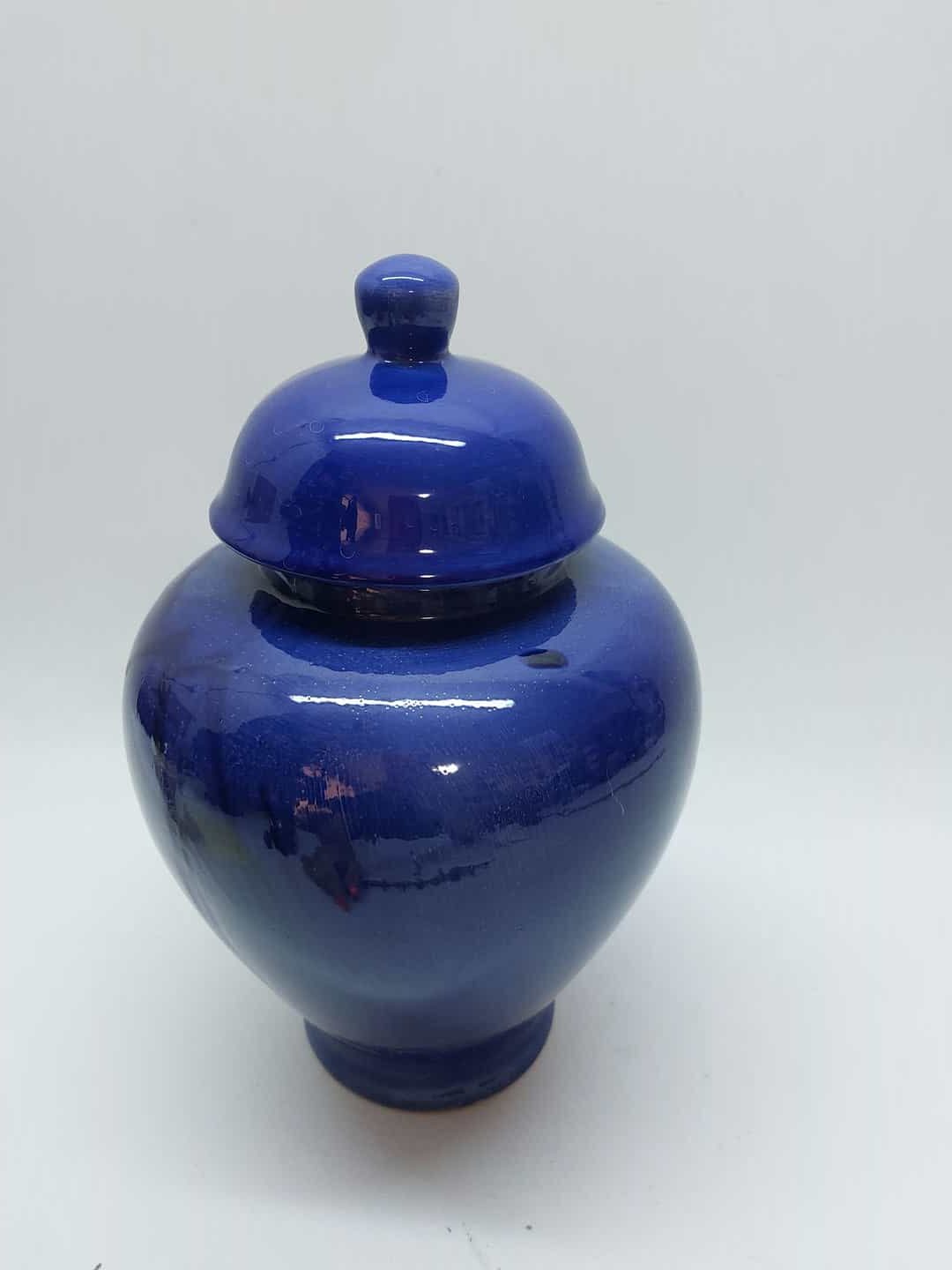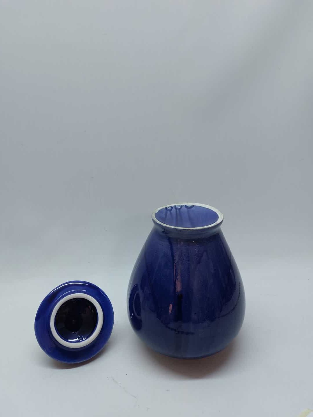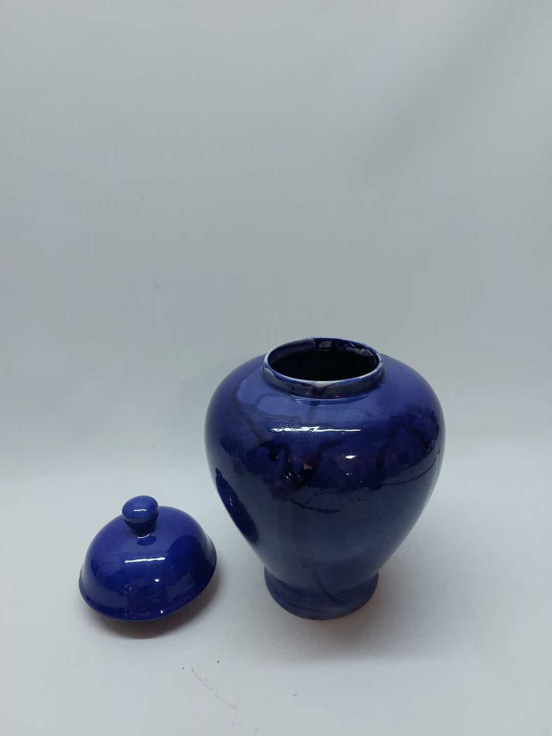 Διακοσμητικό πορσελάνινο βάζο με καπάκι σε μπλε χρώμα (με μικρό ελάττωμα στο καπάκι και το χρώμα του) 31x16cm Κωδικός προϊόντος:#s3893