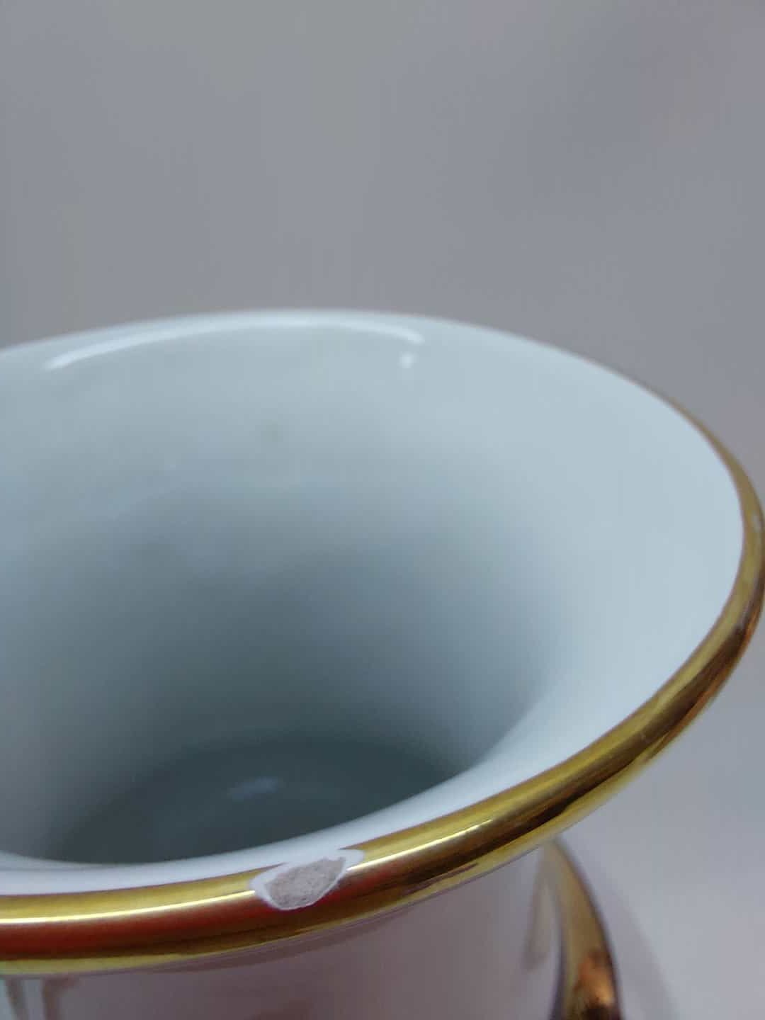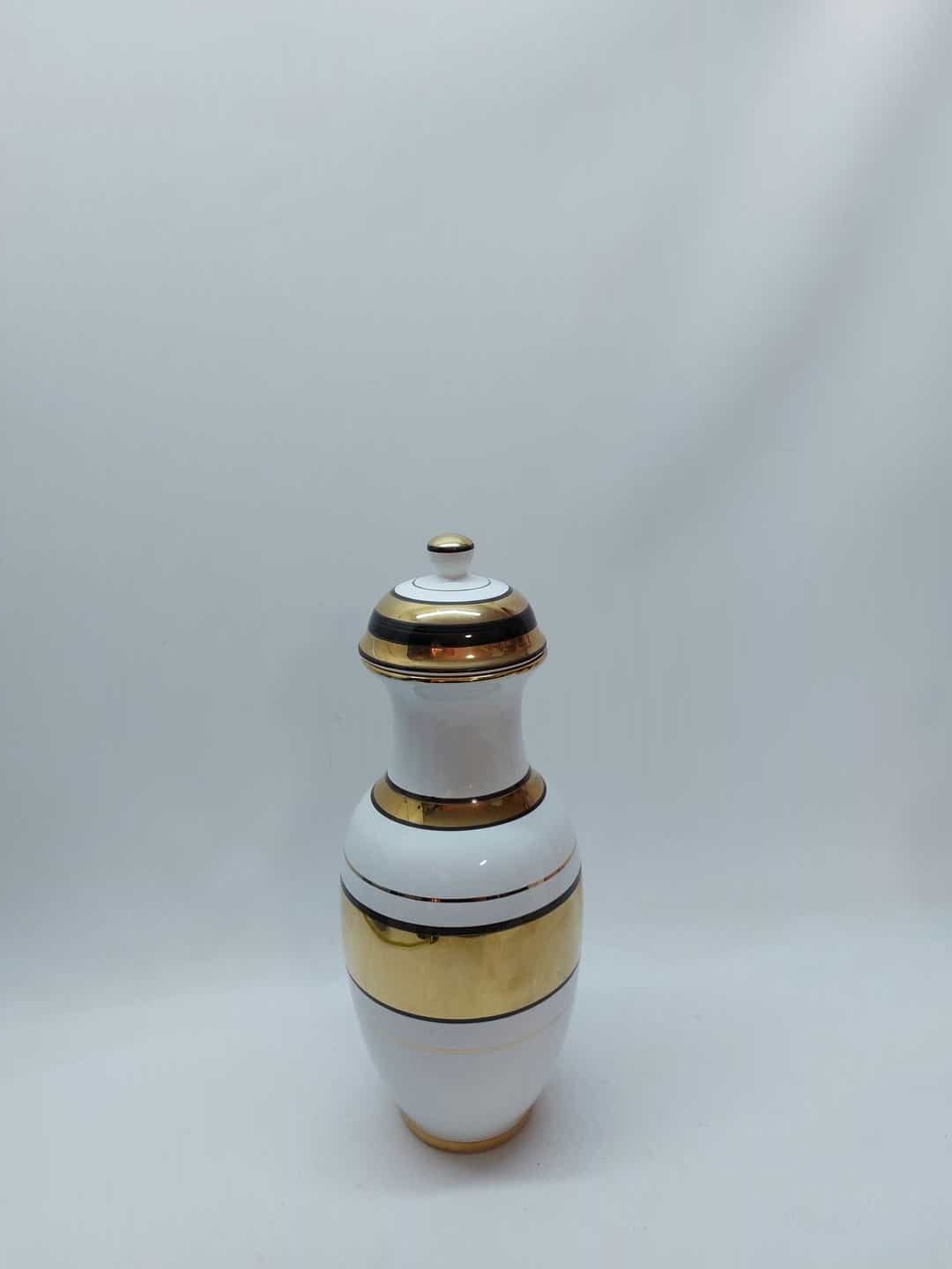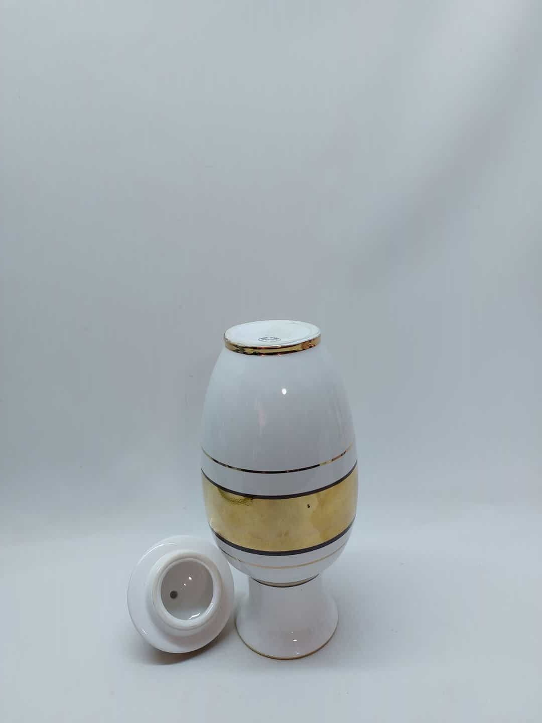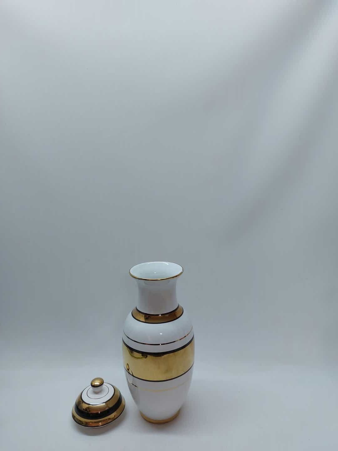 Διακοσμητικό πορσελάνινο βάζο με καπάκι χειροποίητο σε λευκό χρώμα με χρυσό 24% 40x15cm