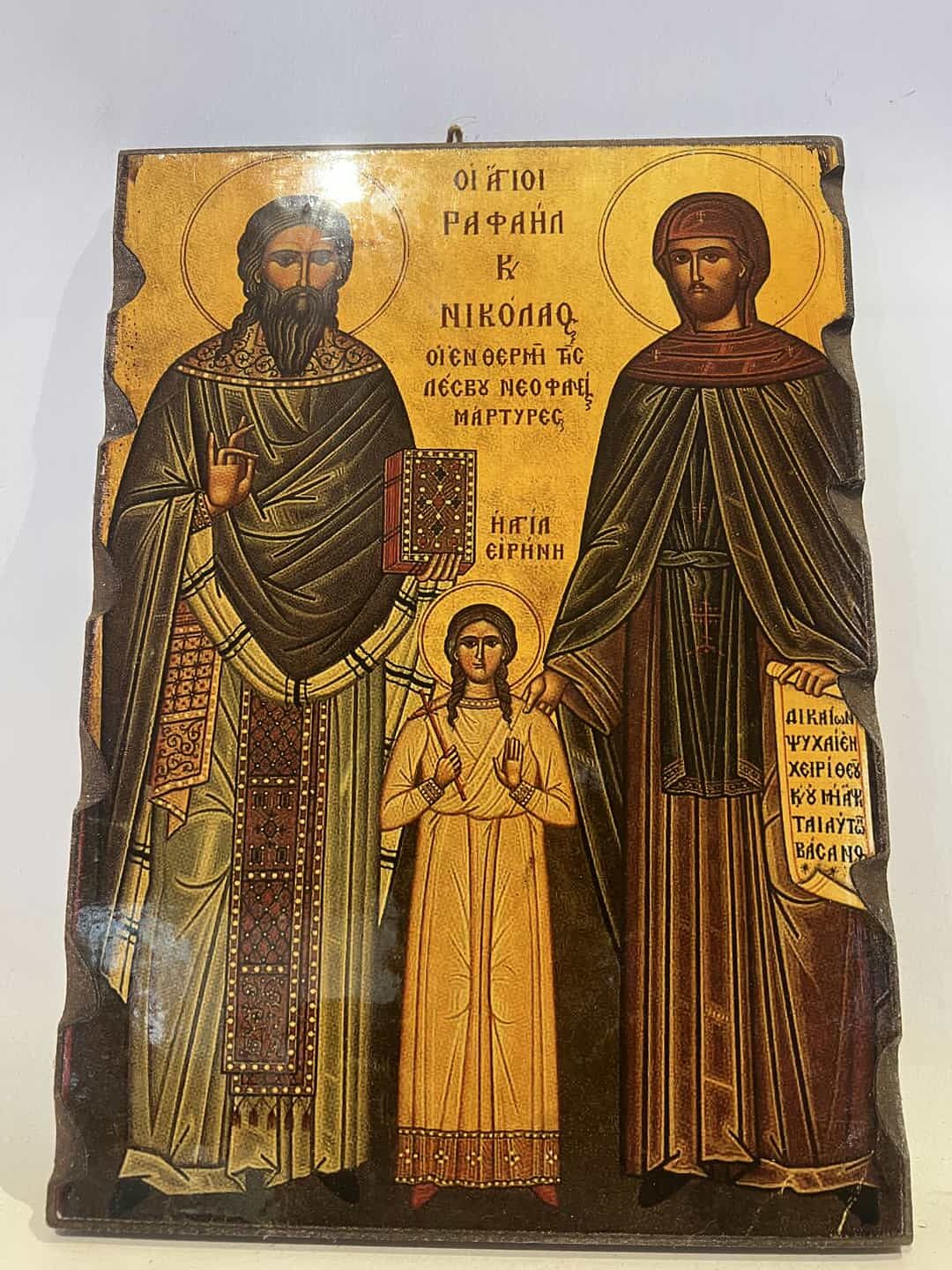 Εκκλησιαστική εικόνα εκτύπωση Αγιοι Ραφαήλ Νικόλαος Ειρήνη 32×23 Κωδικός προϊόντος: #s16147