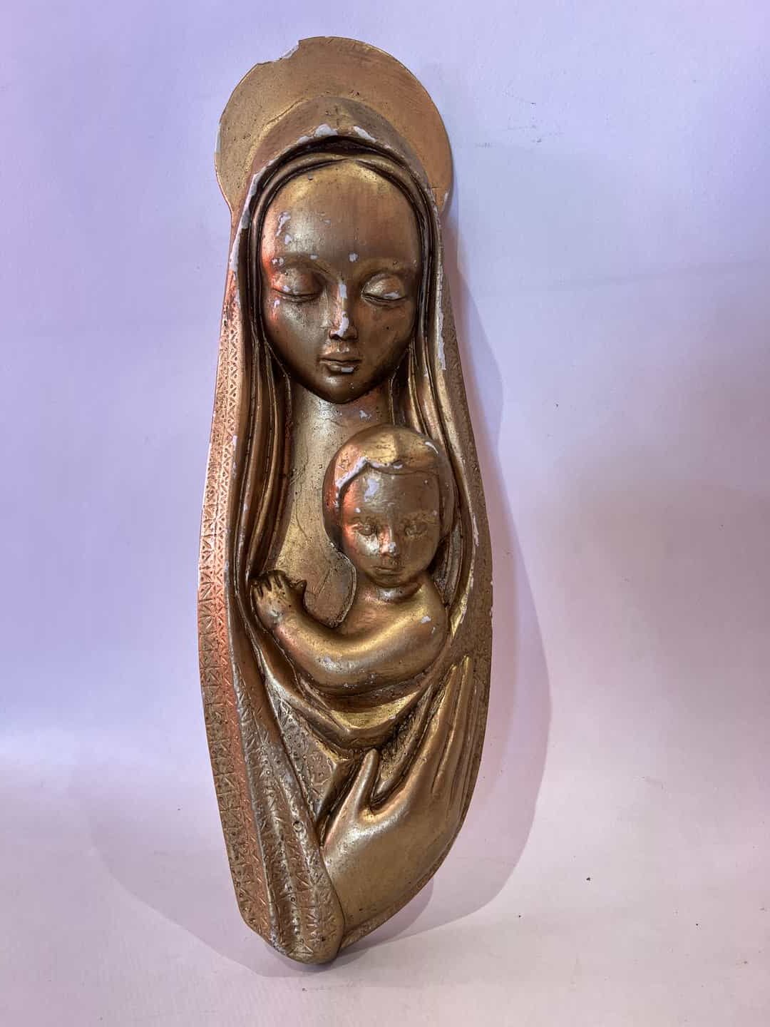 Επιτοίχιο γύψινο ανάγλυφο που απεικονίζει την Παναγία με τον Ιησού 38×12