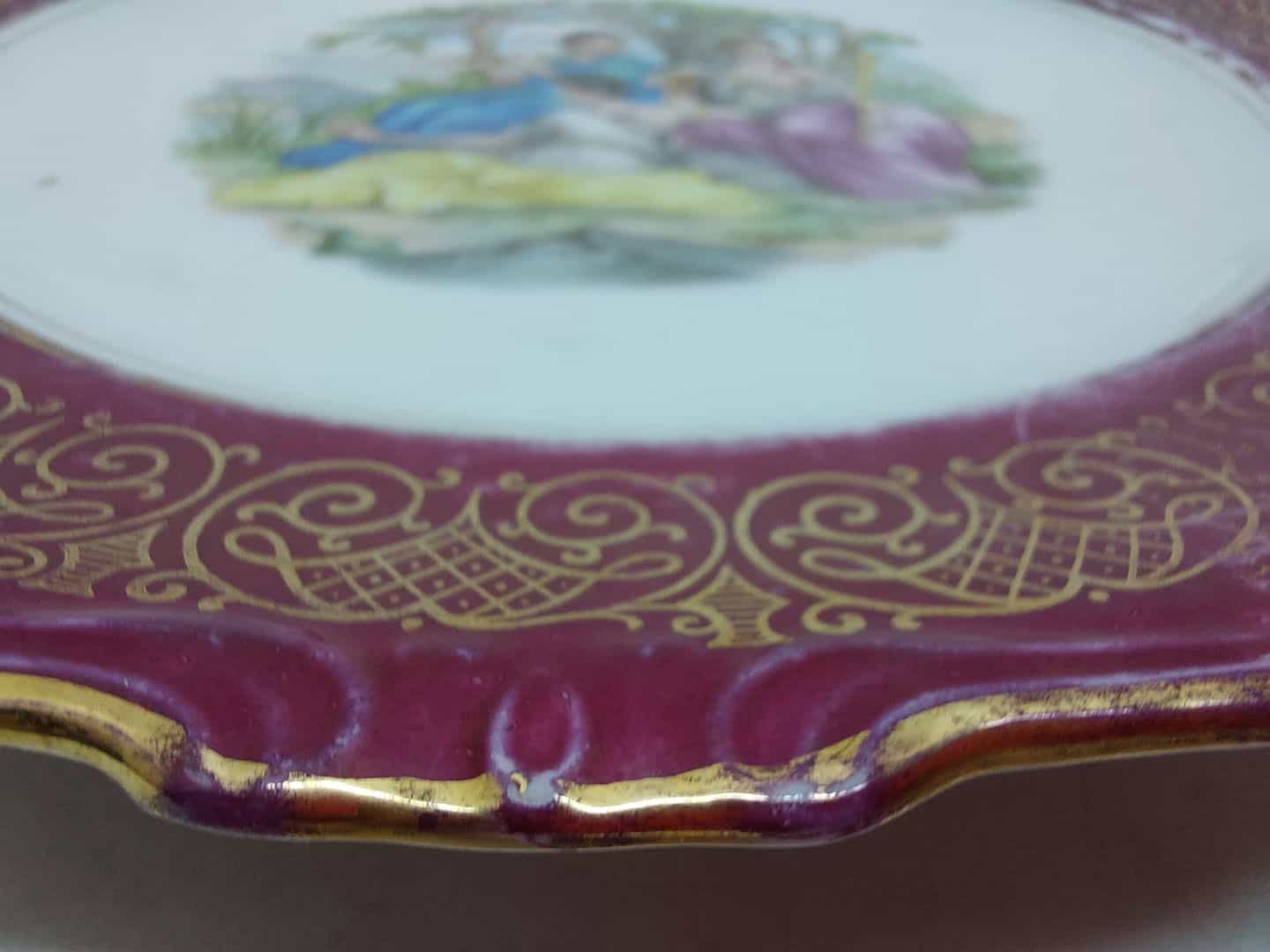 Επιτραπέζιο πορσελάνινο διακοσμητικό πιάτο ζωγραφισμένο με χρυσές λεπτομέρειες 25,5cm