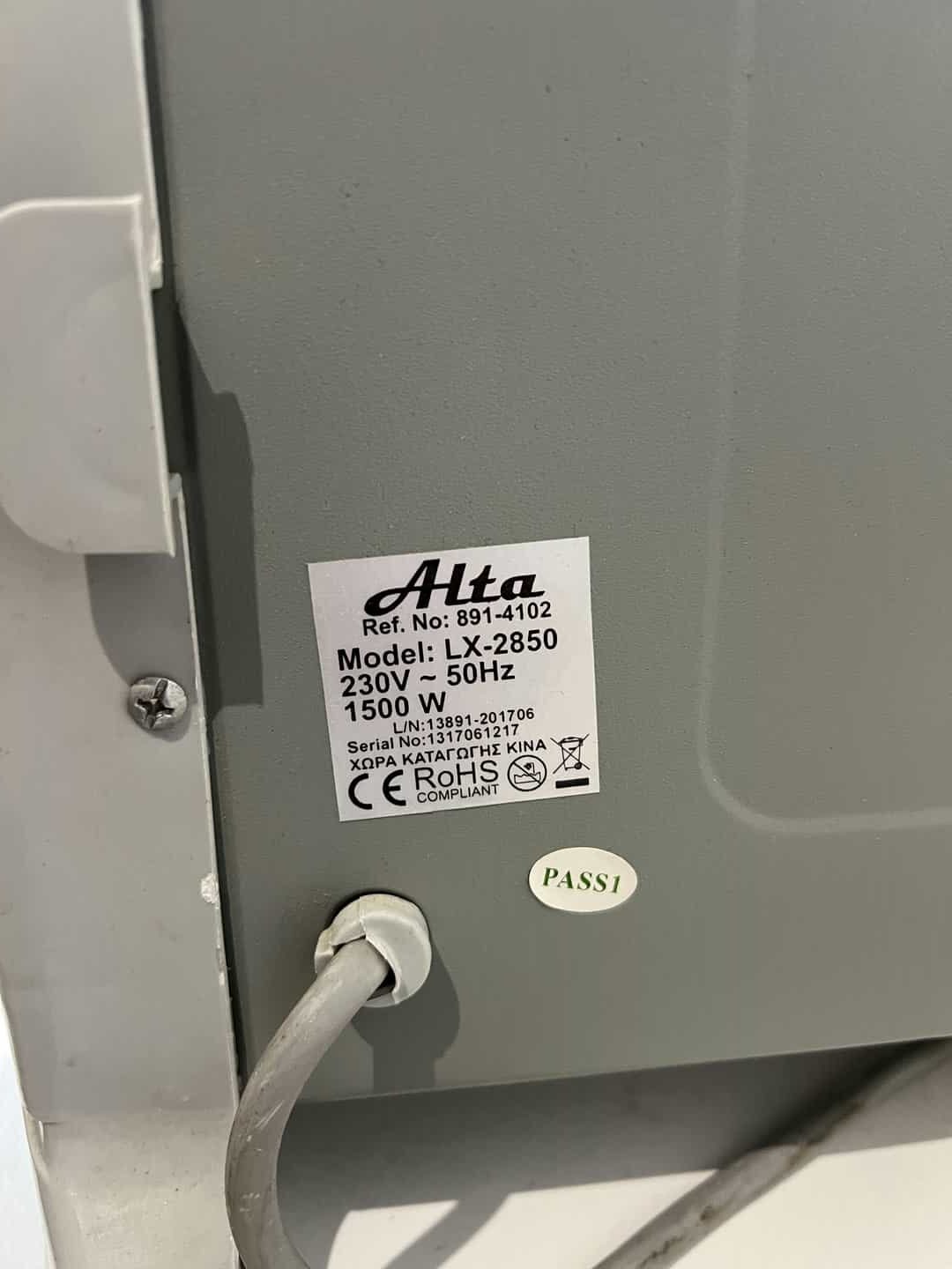 Ηλεκτρική σόμπα χαλαζία Alta 1500W/230V-50Hz 43x55x22 Λειτουργεί , υπάρχουν φθορές  Κωδικός προϊόντος: #s15169