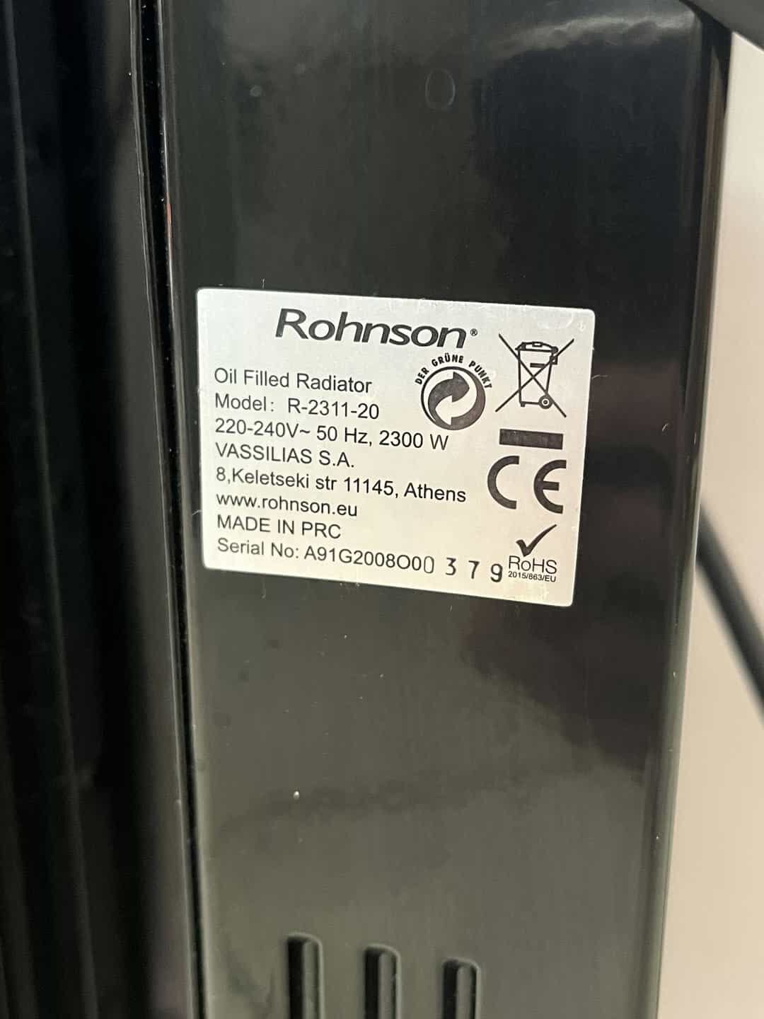 Ηλεκτρικός θερμαντήρας λαδιού Rohnson 220-240V, 50Hz,2300W  64x46x12 Κωδικός προϊόντος: #s14420