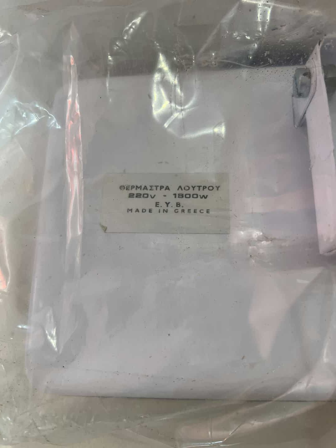 Θερμάστρα λουτρού KALKO 1800W/220V στη συσκευασία του 14x52x8