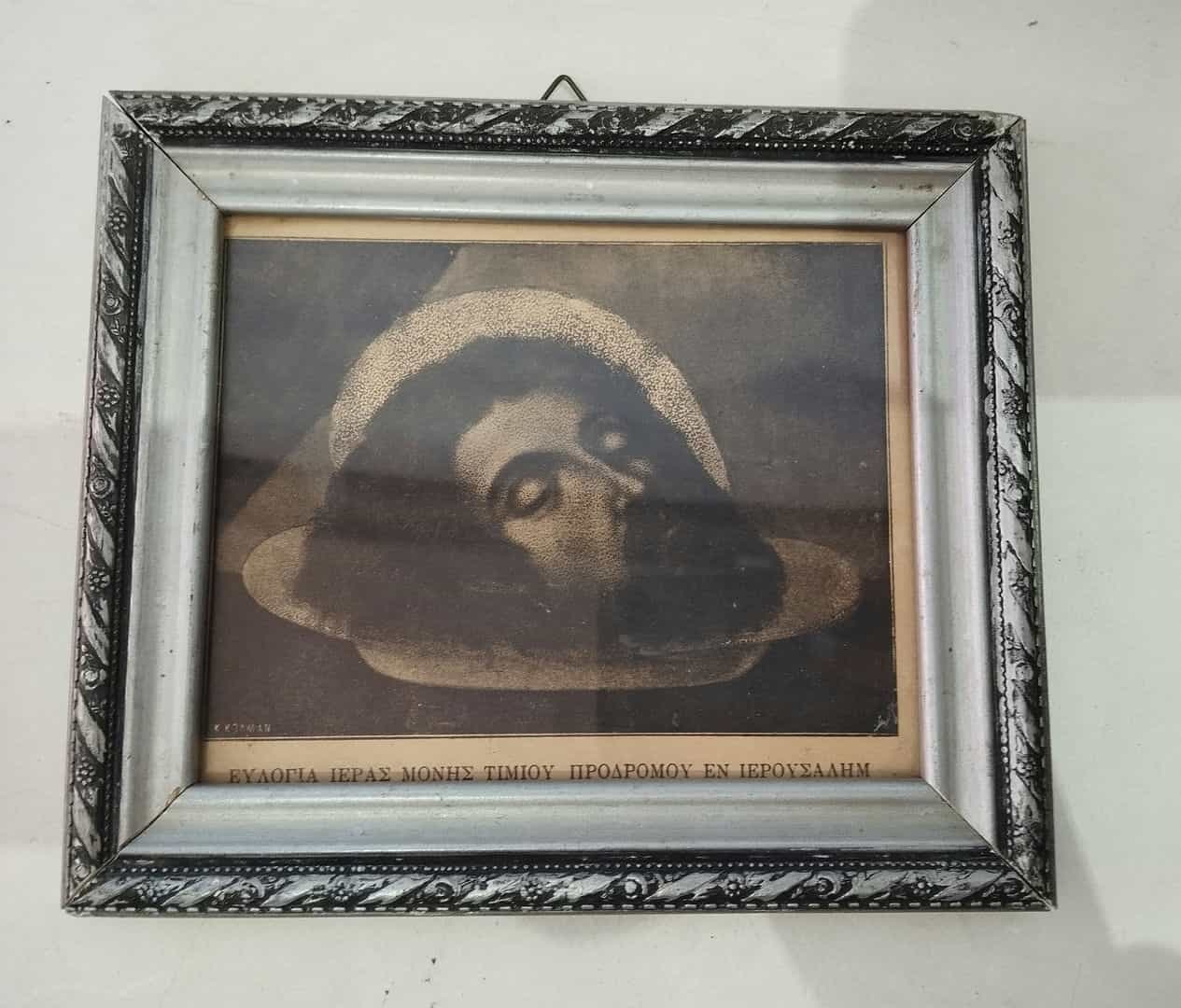 Κορνίζα που περιέχει την αποτομή της κεφαλής του Τιμίου Προδρόμου 16×19