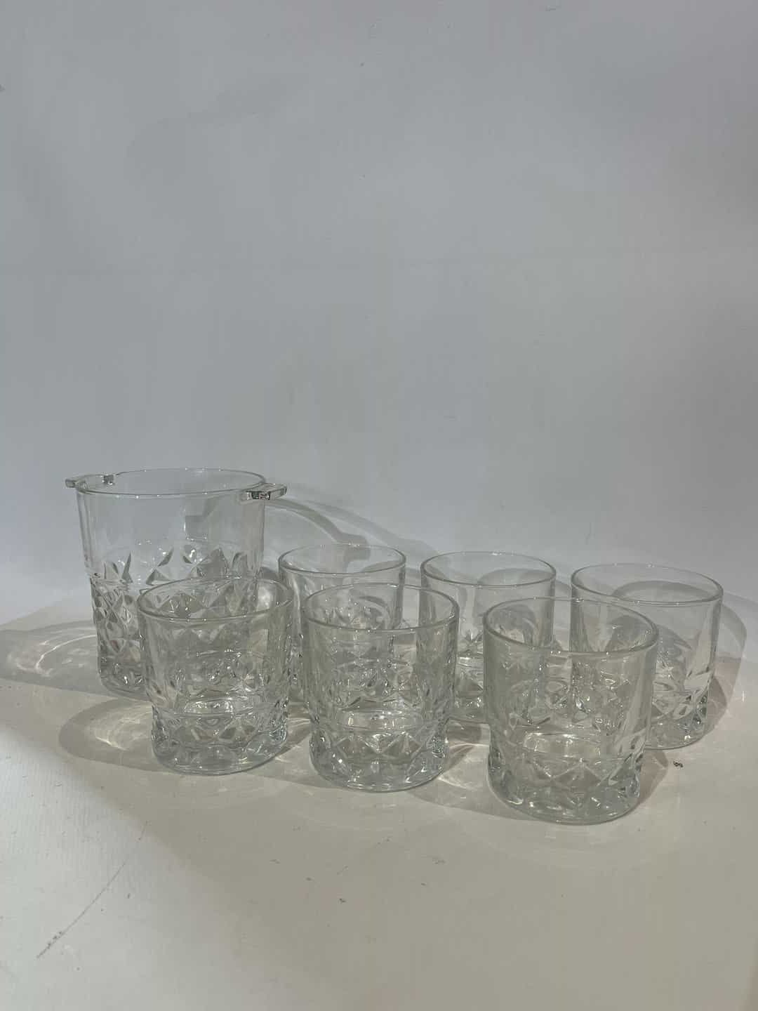 Κρυστάλλινο σετ σερβιρίσματος παγοθήκη με 6 ποτήρια, France. Διαστάσεις παγοθήκης: 13x16x12 , ποτηριών: 8×8 Κωδικός προϊόντος: #s14690