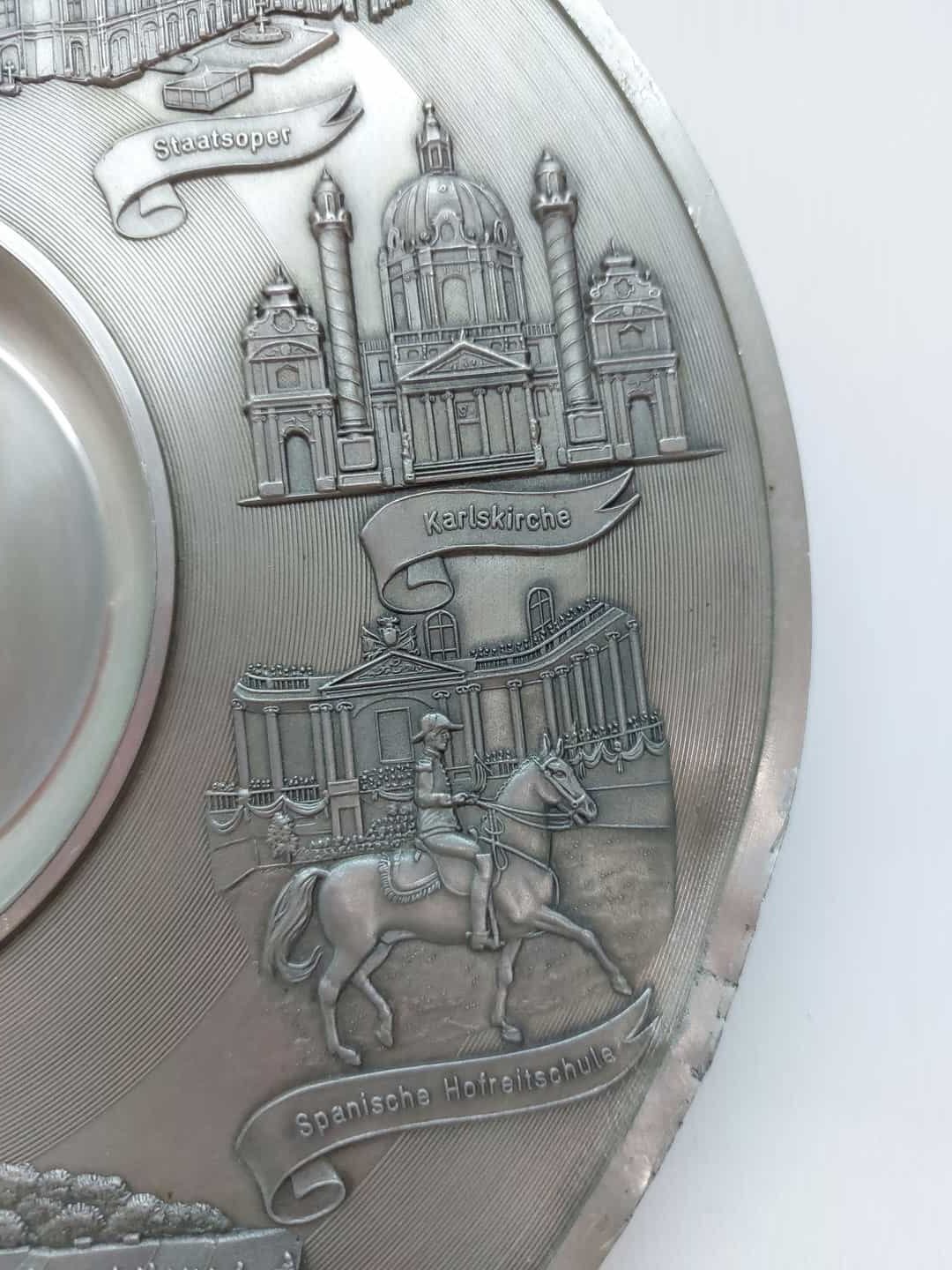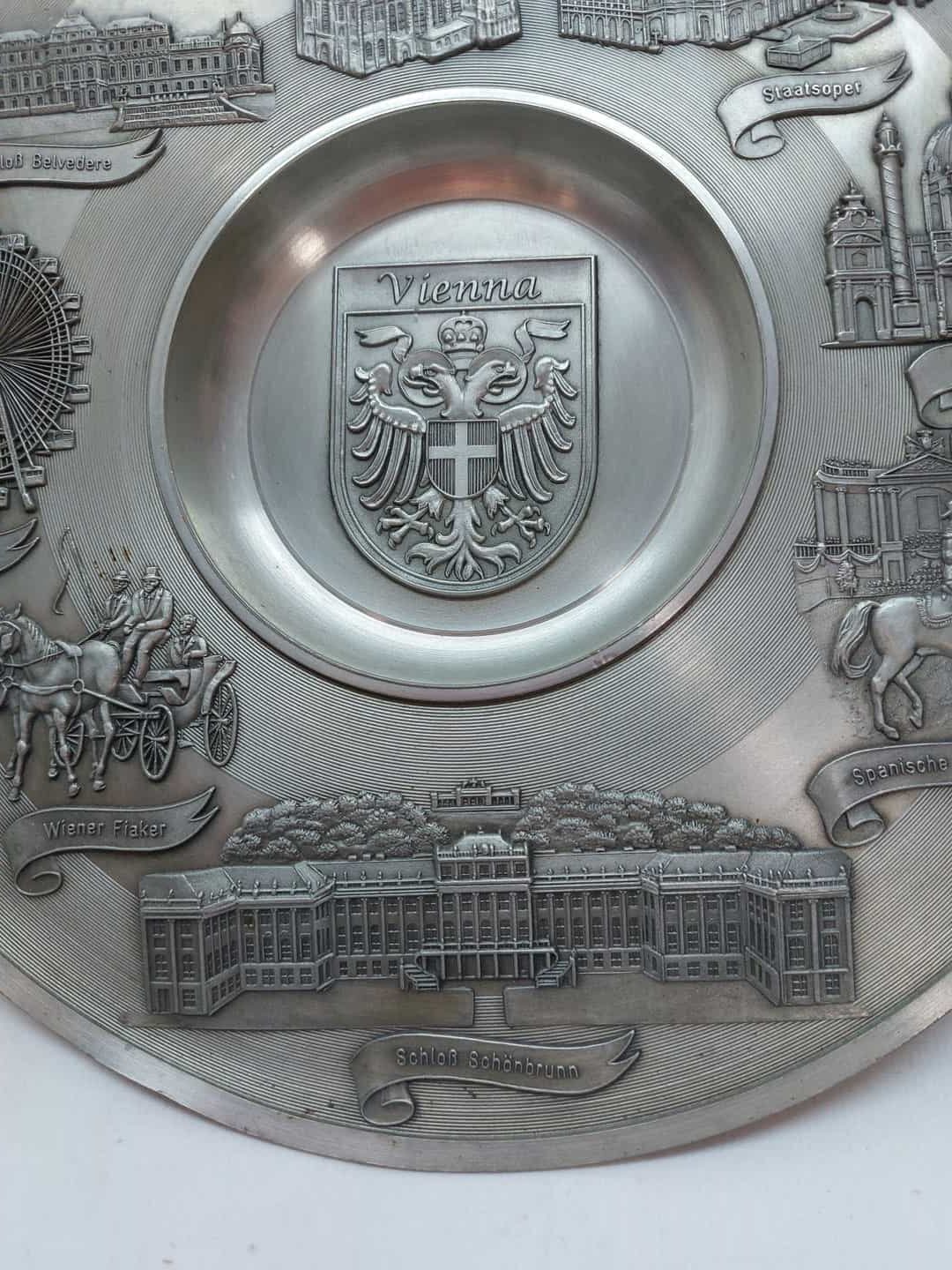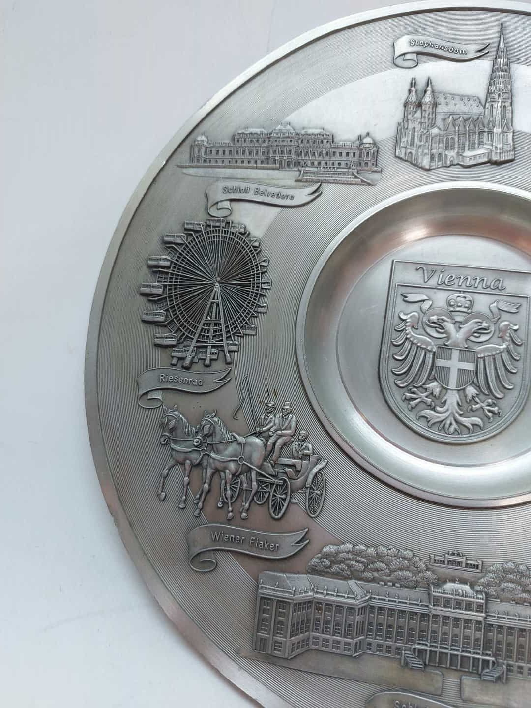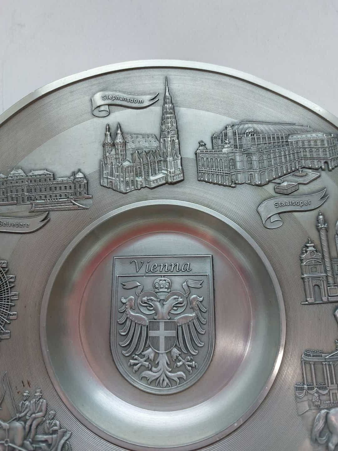 Μεταλλικό αναμνηστικό διακοσμητικό πιάτο τοίχου Vienna 23cm Artina Zinn , made in Austria