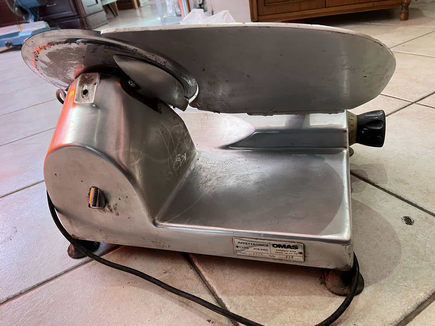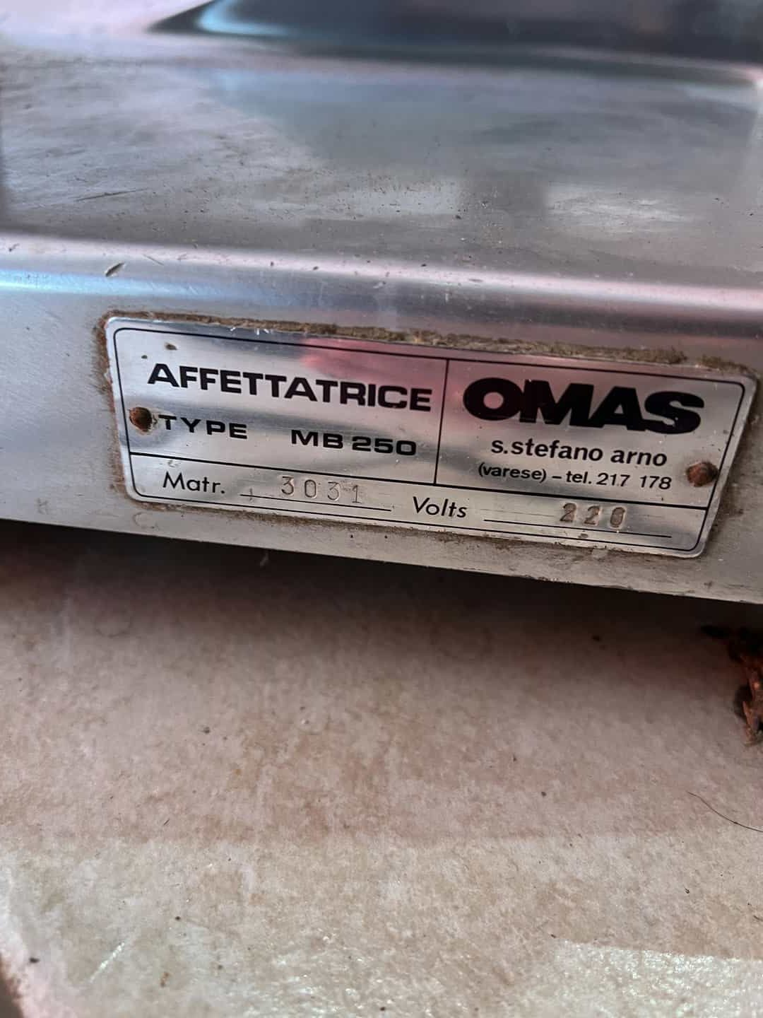 Μηχανή κοπής αλλαντικών OMAS MB250 34x49x42 Λειτουργεί, θέλει διακόπτη και λείπει το προστατευτικό κάλυμα Κωδικός προϊόντος: #s15627