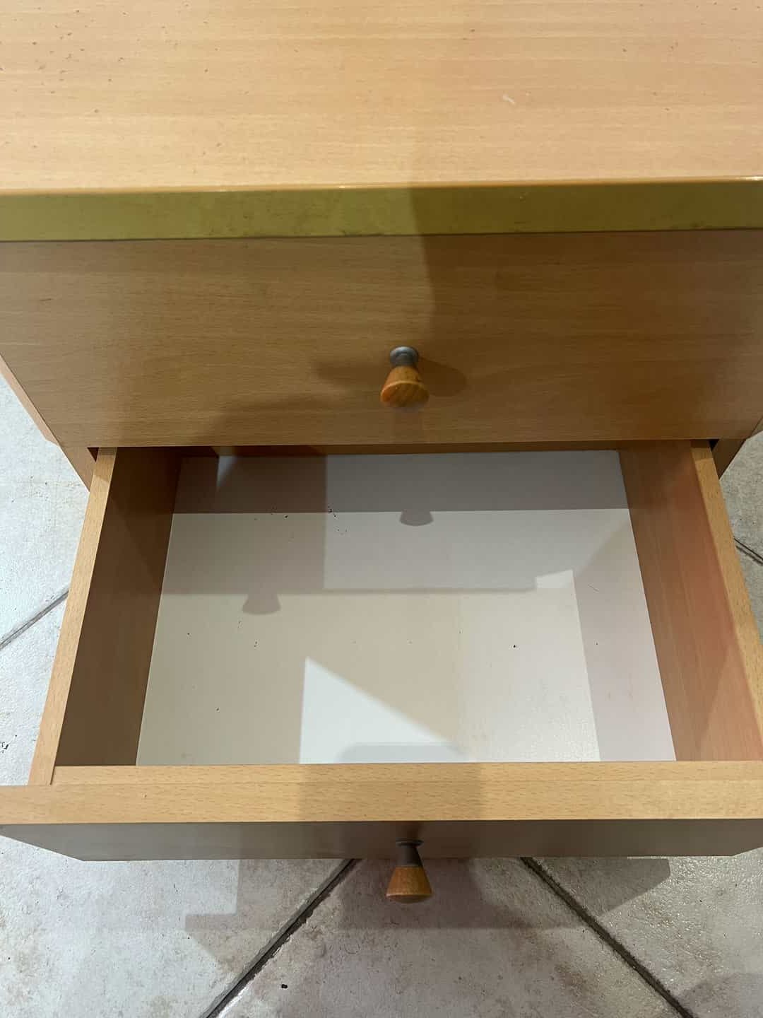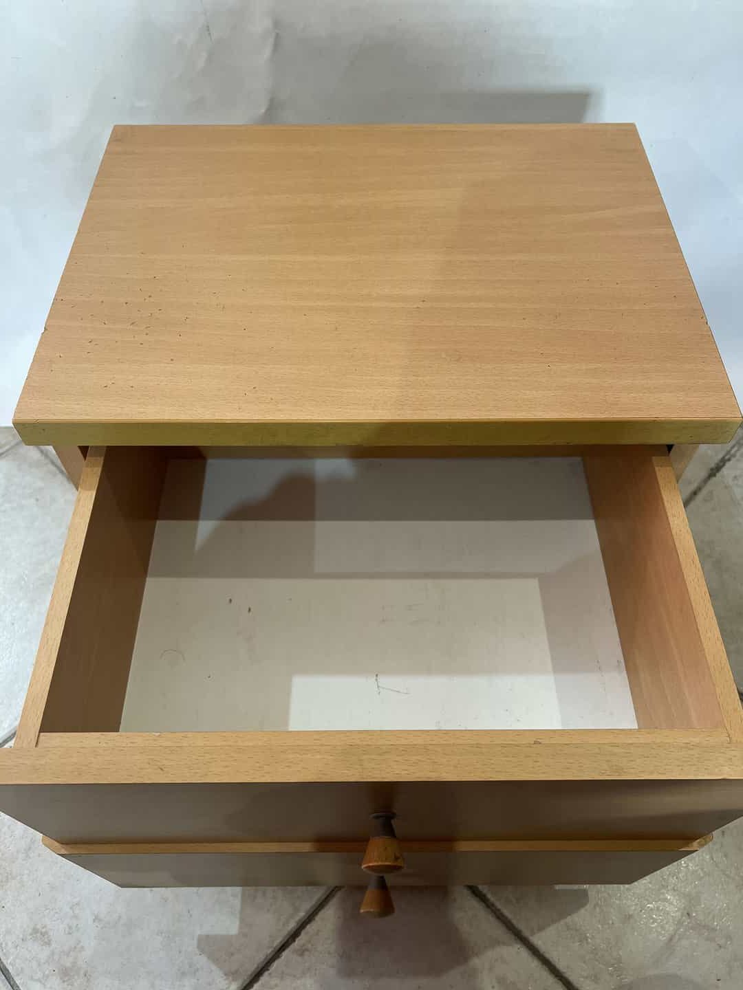 Μικρό ξύλινο κομοδίνο με δύο συρτάρια 42,5x45x35,5 Υπάρχουν φθορές Κωδικός προϊόντος: #s16433
