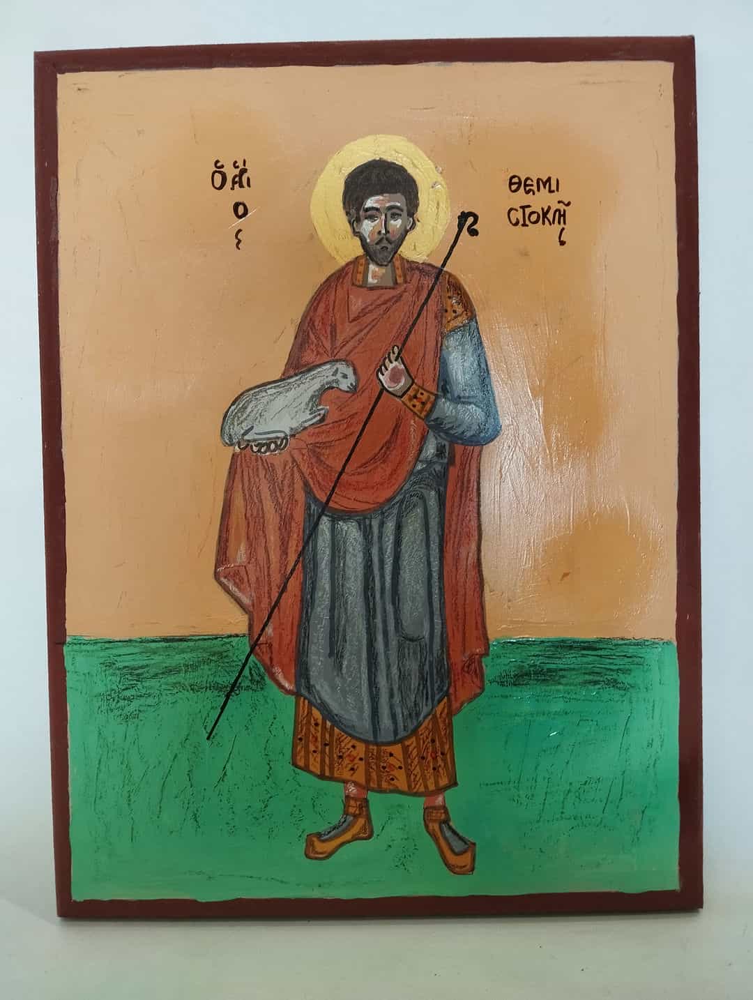 Ξύλινη εκκλησιαστική εικόνα Άγιος Θεμιστοκλής ζωγραφισμένη στο χέρι 40×30