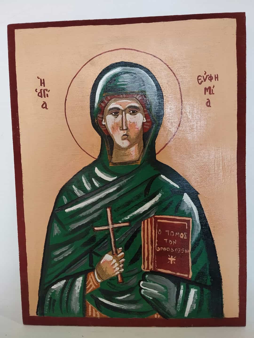 Ξύλινη εκκλησιαστική εικόνα Αγία Ευφημία ζωγραφισμένη στο χέρι 39,5×29,5