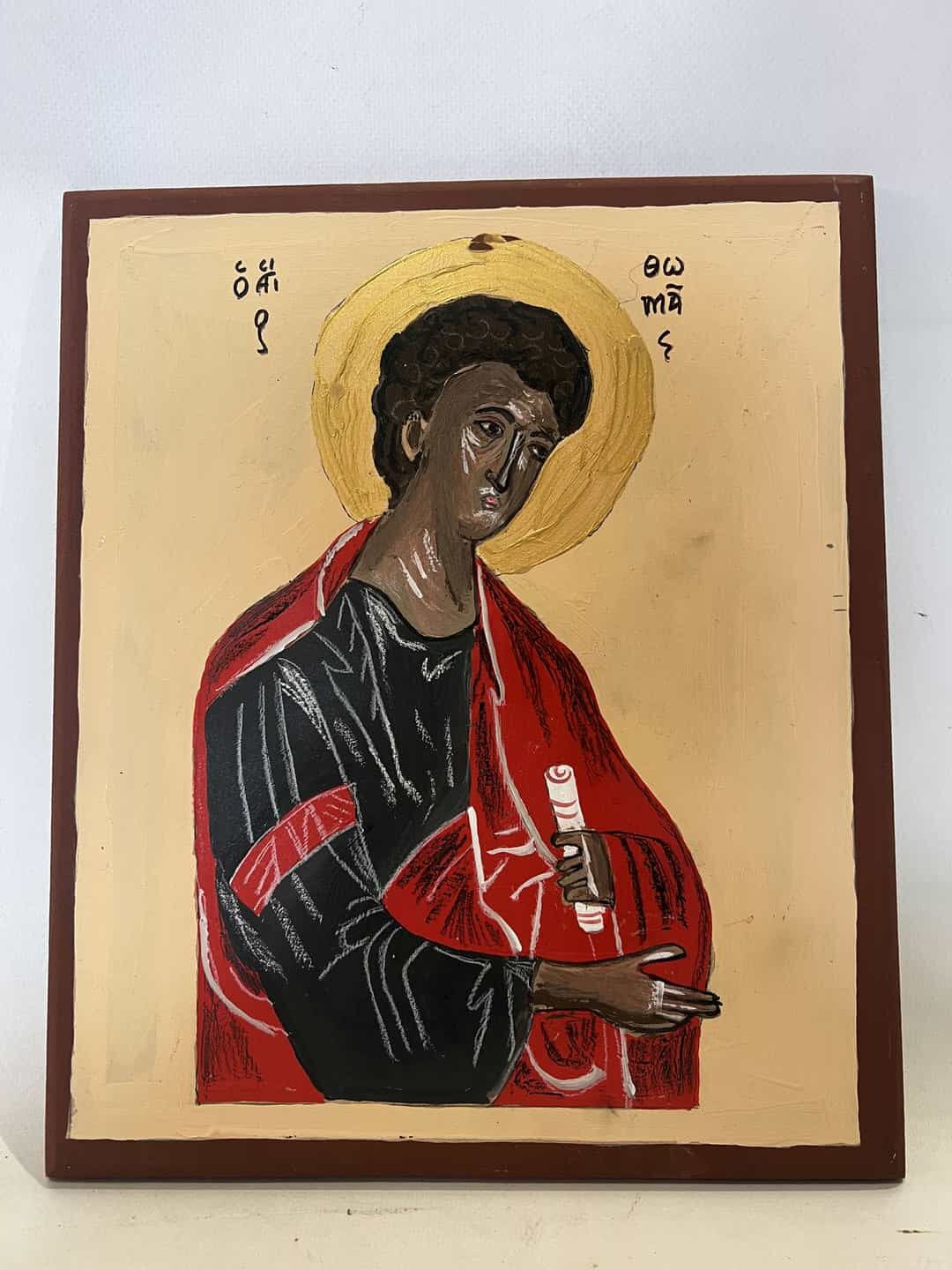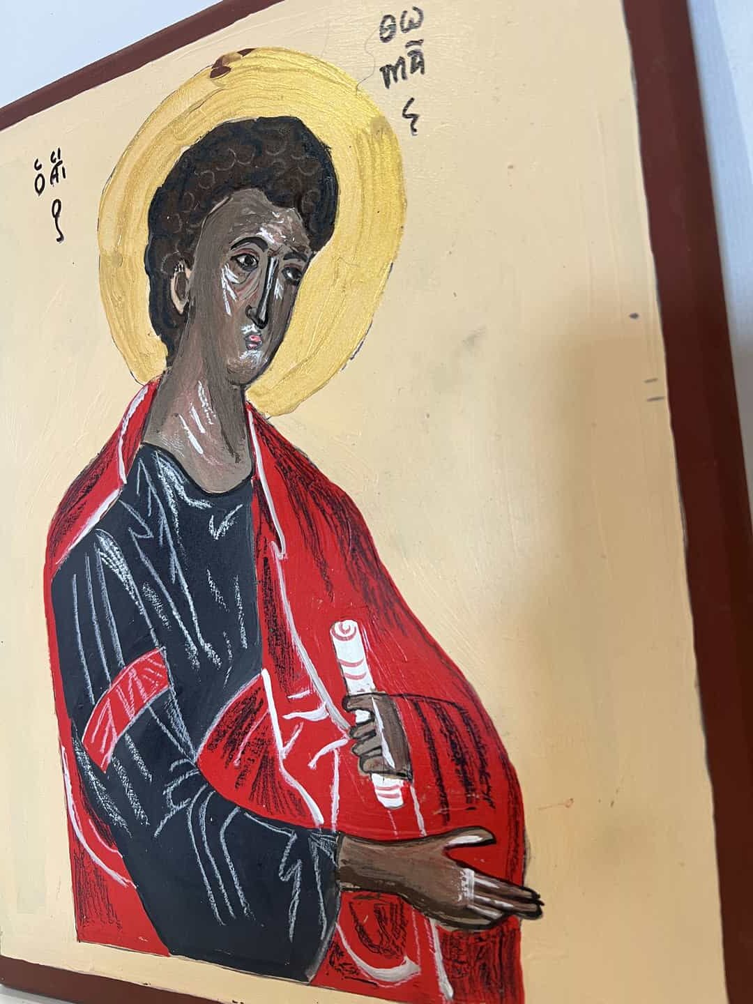 Ξύλινη εκκλησιαστική εικόνα του Αγίου Θωμά ζωγραφισμένη στο χέρι 29,5×25