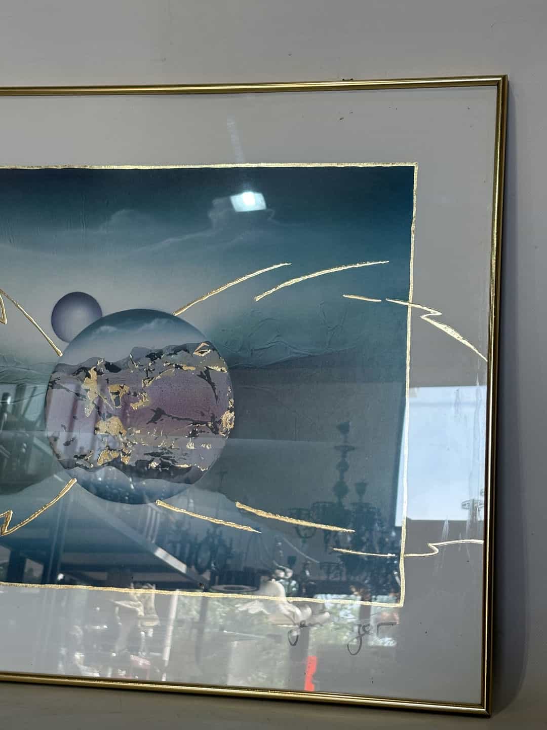 Πίνακας ζωγραφικής εκτύπωση με τζάμι σε κορνίζα.