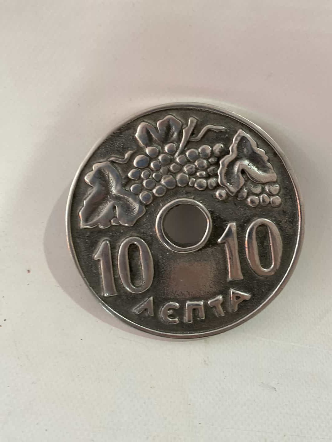 Παλιό ελληνικό διακοσμητικό νόμισμα 10 λεπτών του 1965, 10cm Κωδικός προϊόντος: #s14097