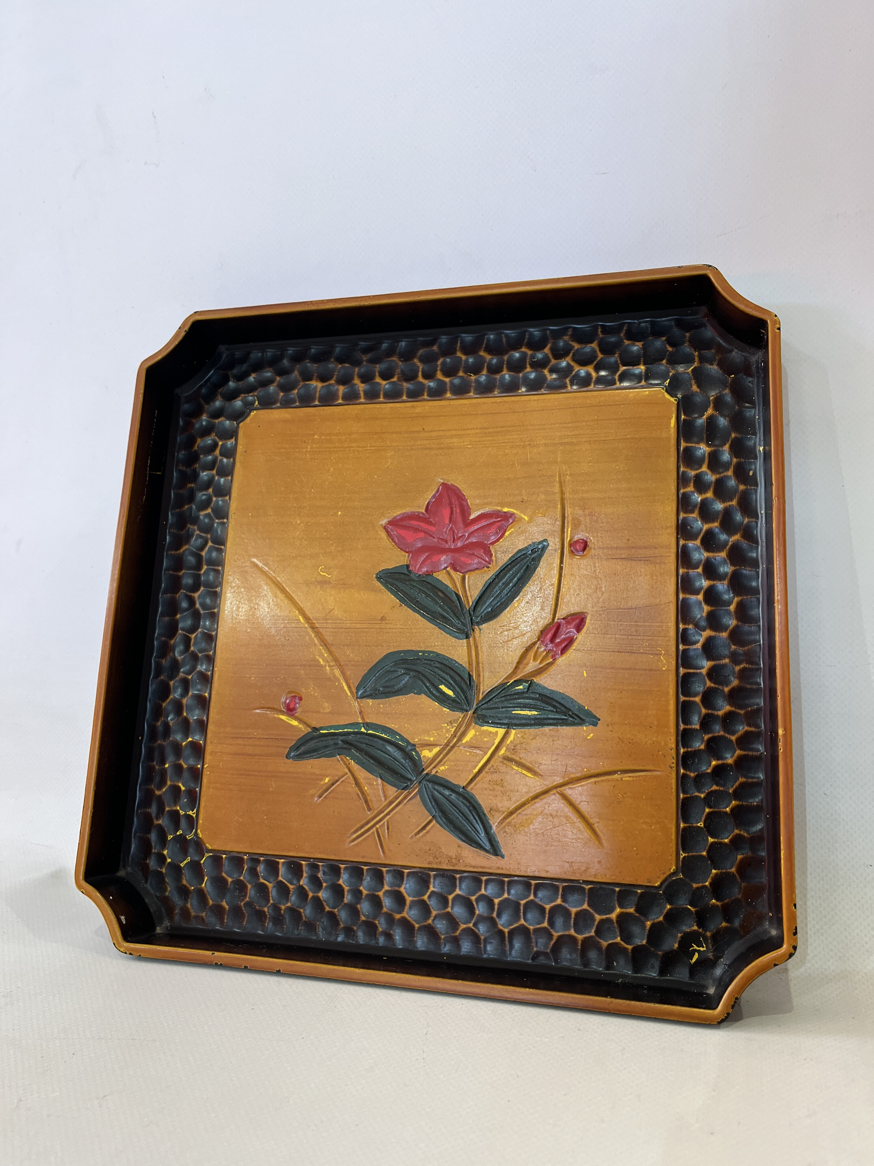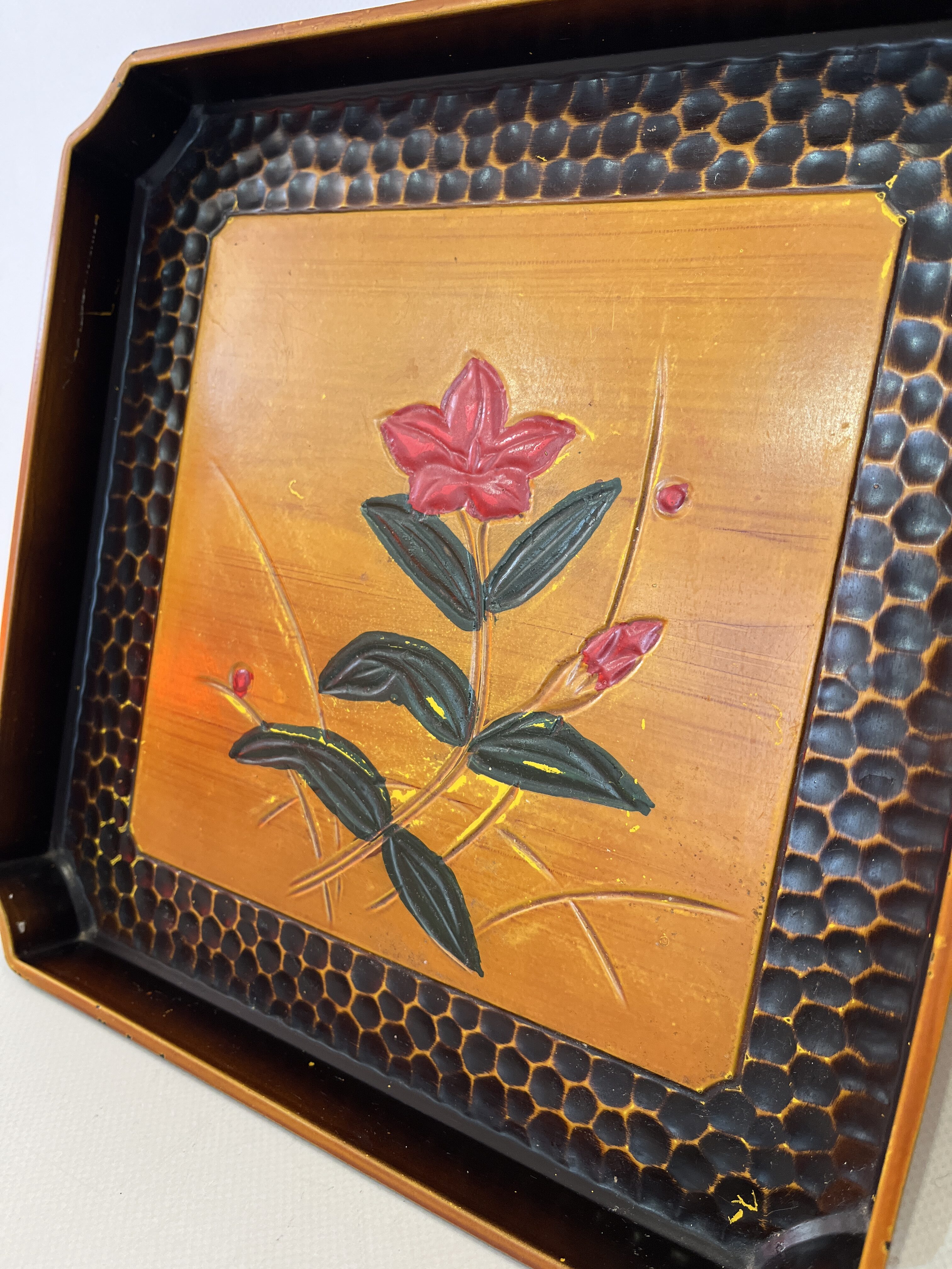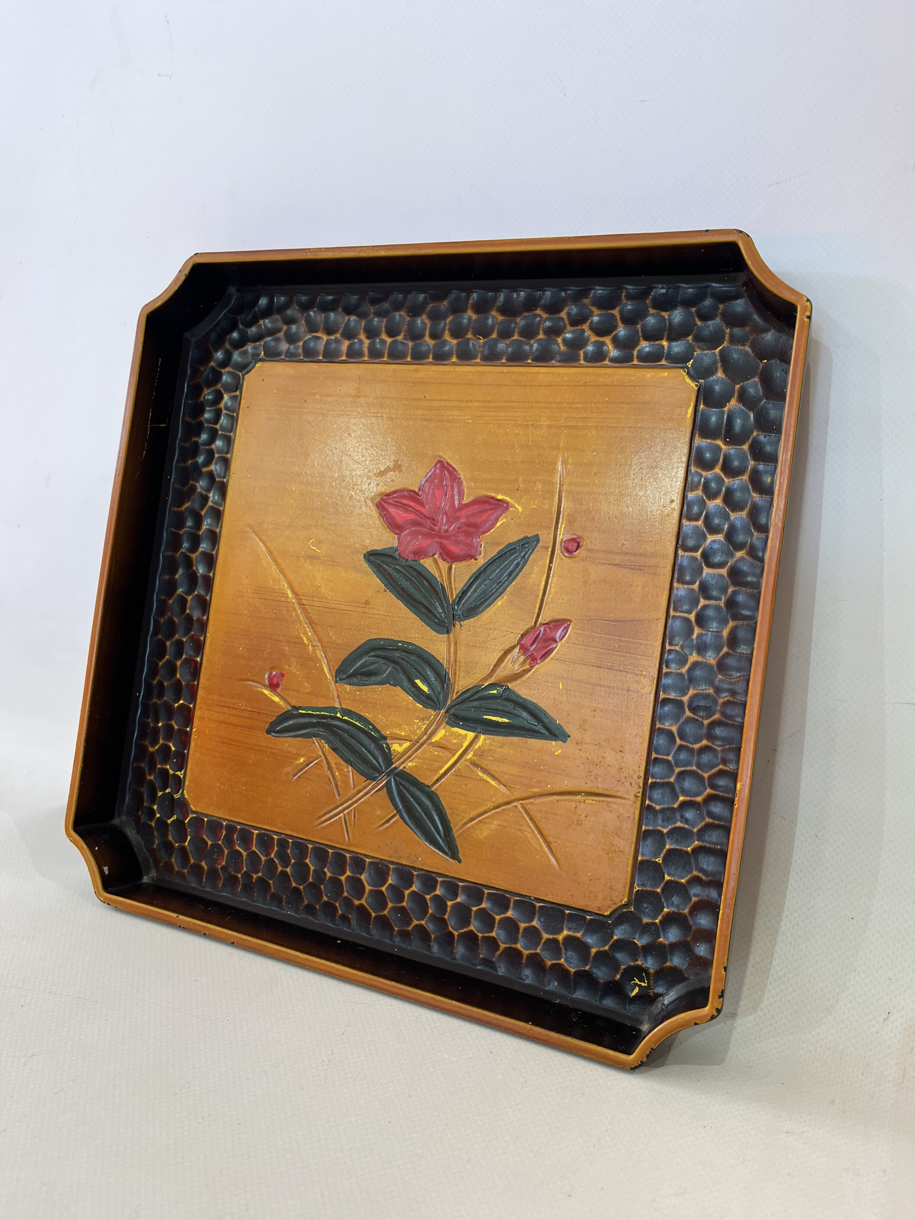 Πλαστικός δίσκος σερβιρίσματος με ζωγραφισμένο λουλούδι 28×28 Κωδικός προϊόντος: #s8300