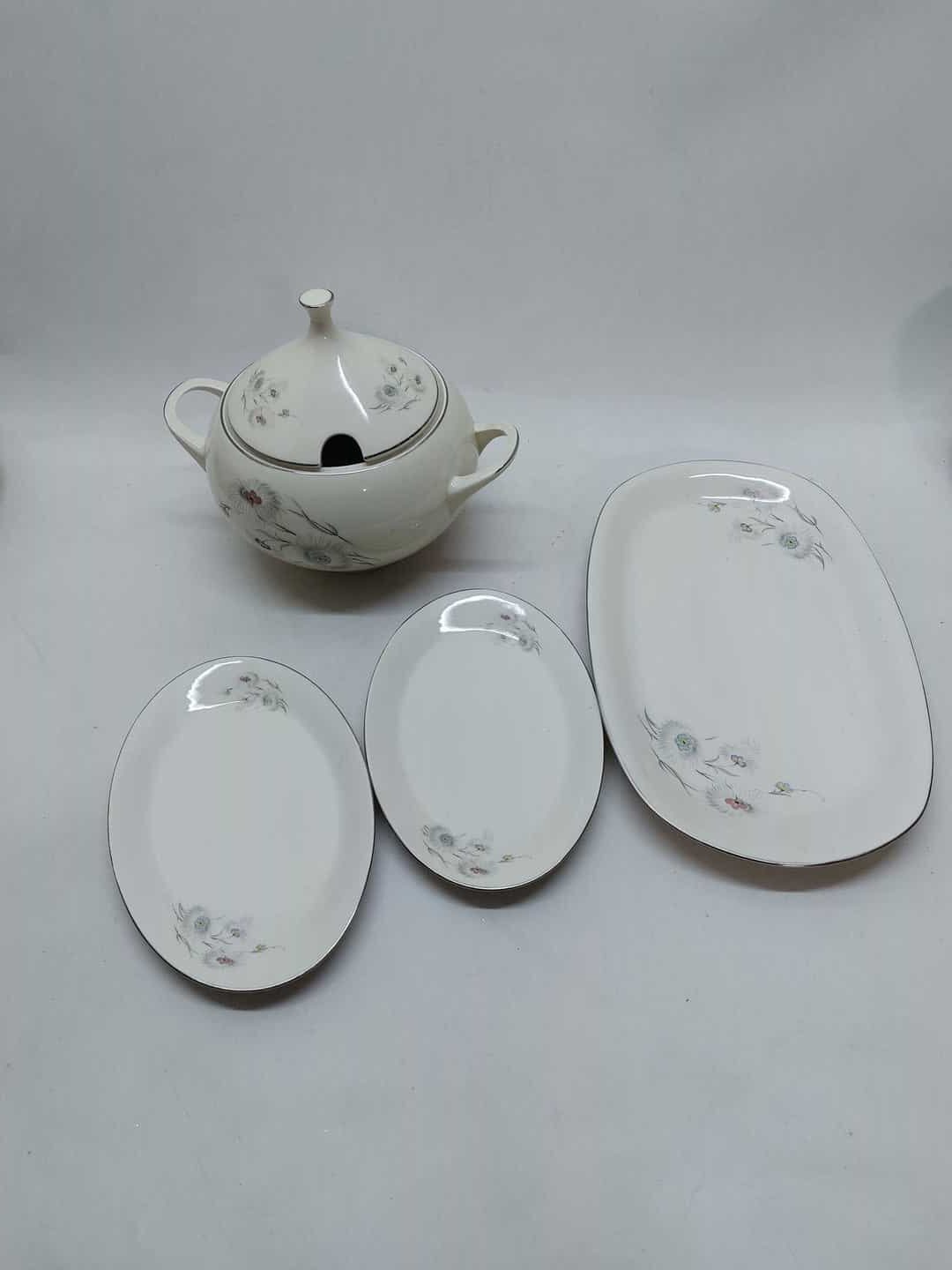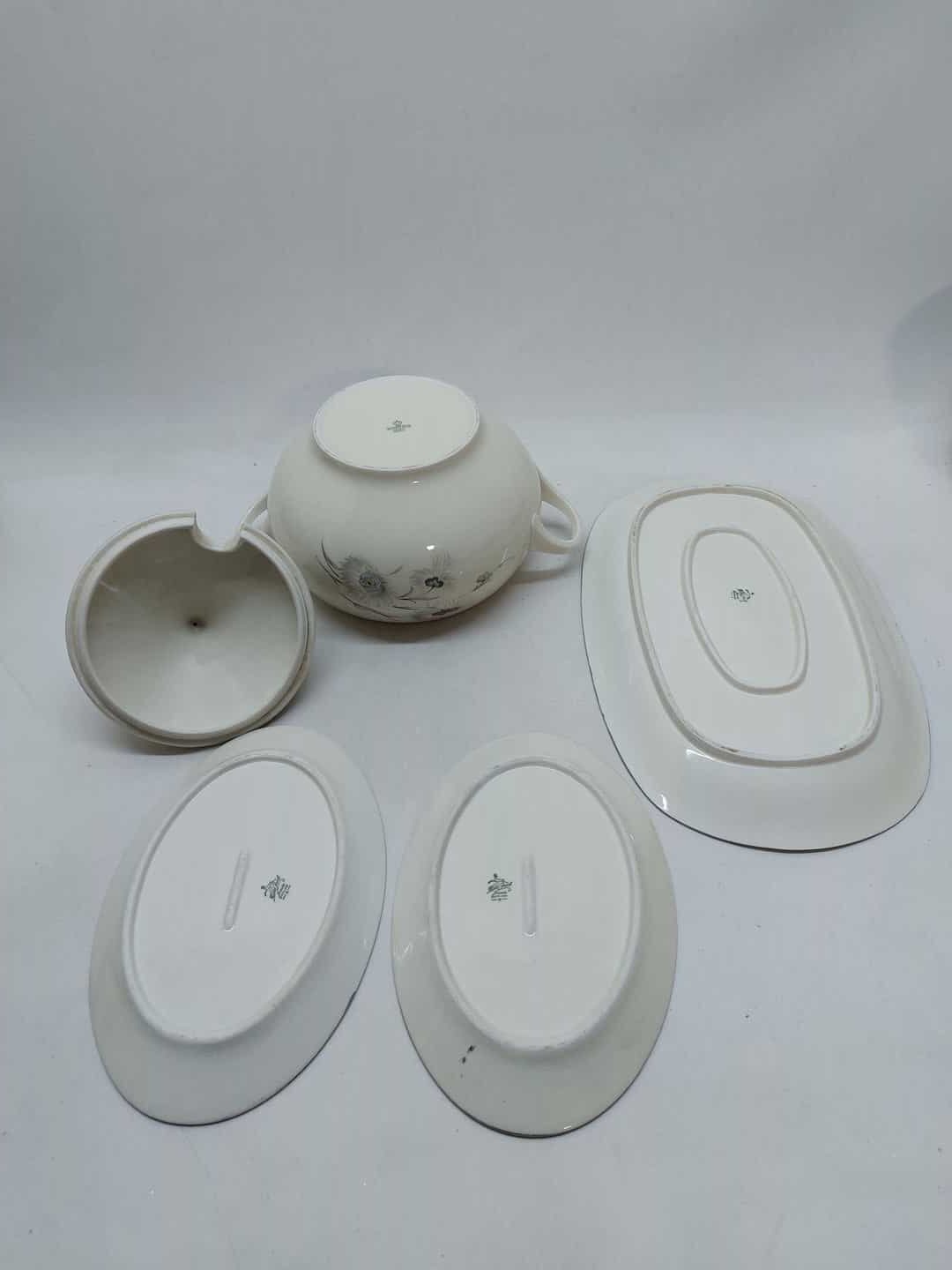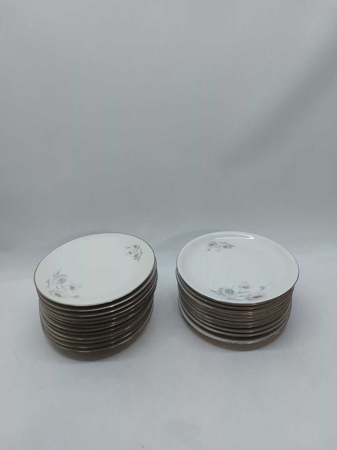 Πορσελάνινο σερβίτσιο BAVARIA 50 τεμαχίων. Αποτελείται από 23 μεγάλα ρηχά πιάτα 24cm (τα 11 έχουν επισήμανση Scherzer Bavaria Germany 24cm και είναι λίγο πιο μπεζ και τα άλλα 12 Εschenbach Bavaria Germany 24.5cm, είναι λίγο πιο λευκά), 12 βαθιά πιάτα Eschenbach Bavaria 4x22cm, 10 μικρά πιάτα ρηχά 19,5cm Scherzer Bavaria Germany (κάποια είναι πιο λευκά και κάποια πιο μπεζ), 1 μακρόστενη πιατέλα 36×22,5cm Hertel Jacob Bavaria Germany,  1 βαθύ μπολ 6,5×23,5cm Hertel Jacob Bavaria Germany, 2 πιατέλες οβάλ 2×24,5×16,5cm (η μία έχει ένα μικρό ελάττωμα στο πίσω μέρος, όπως φαίνεται στην φωτογραφία) Hertel Jakob Bavaria Germany και 1 σουπιέρα 23x28x18cm Scherzer Bavaria Germany Κωδικός προϊόντος: #s6215