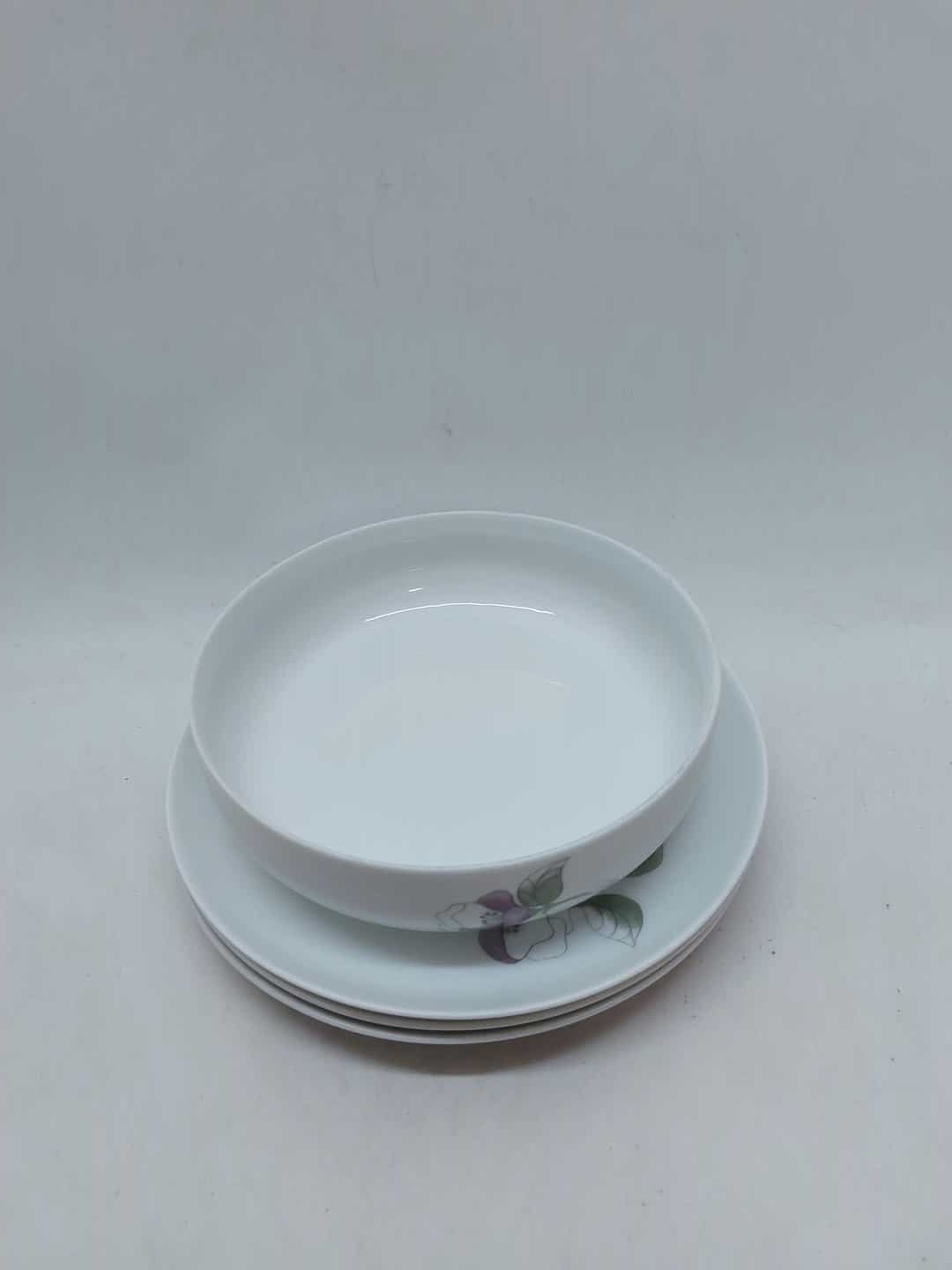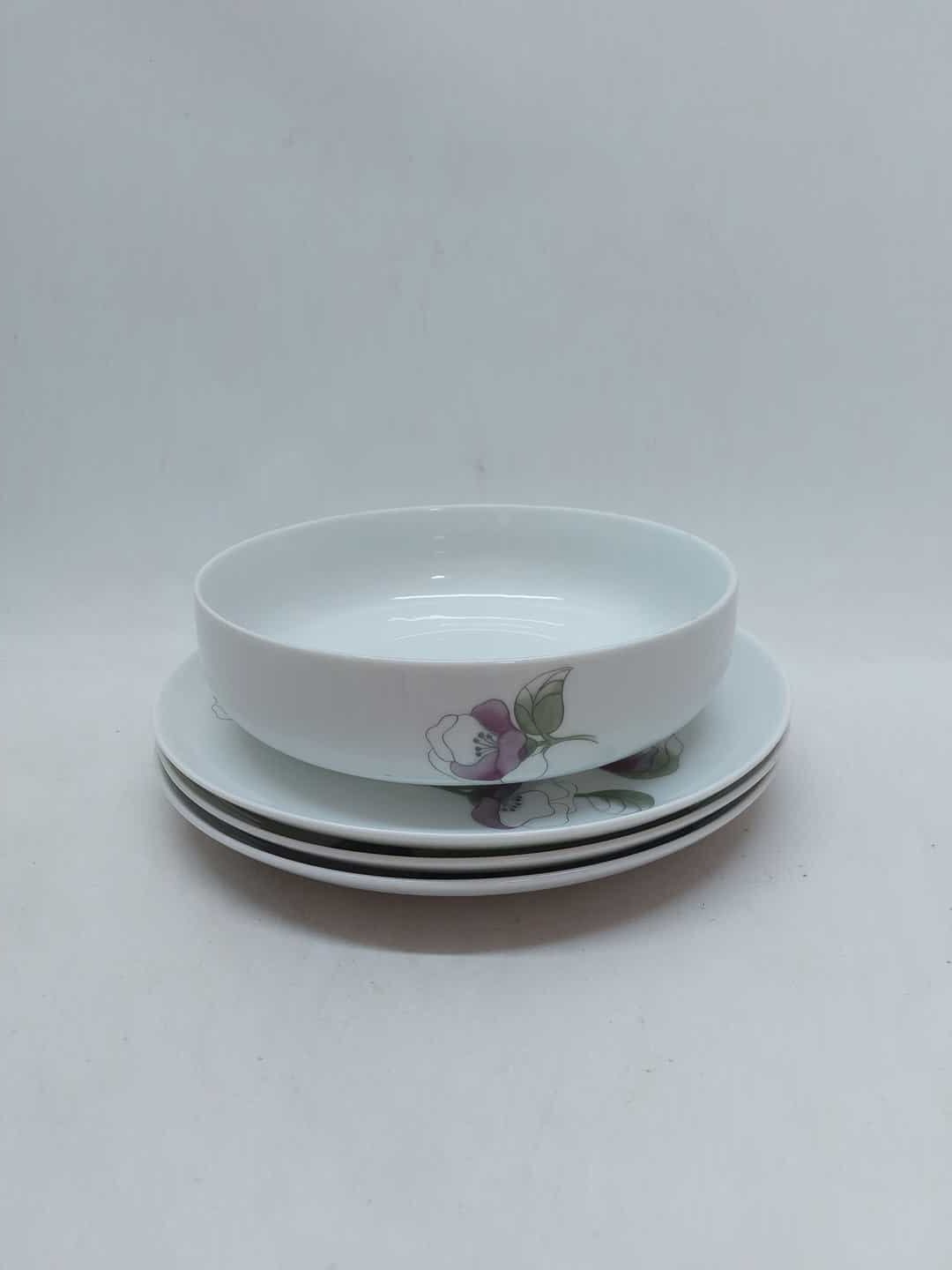 Σερβίτσιο φαγητού 4 τεμαχίων με λουλούδια. Αποτελείται από 3 μεγάλα πιάτα ρηχά 25cm και 1 βαθύ μπολ 6×21,5cm Κωδικός προϊόντος:#s5119