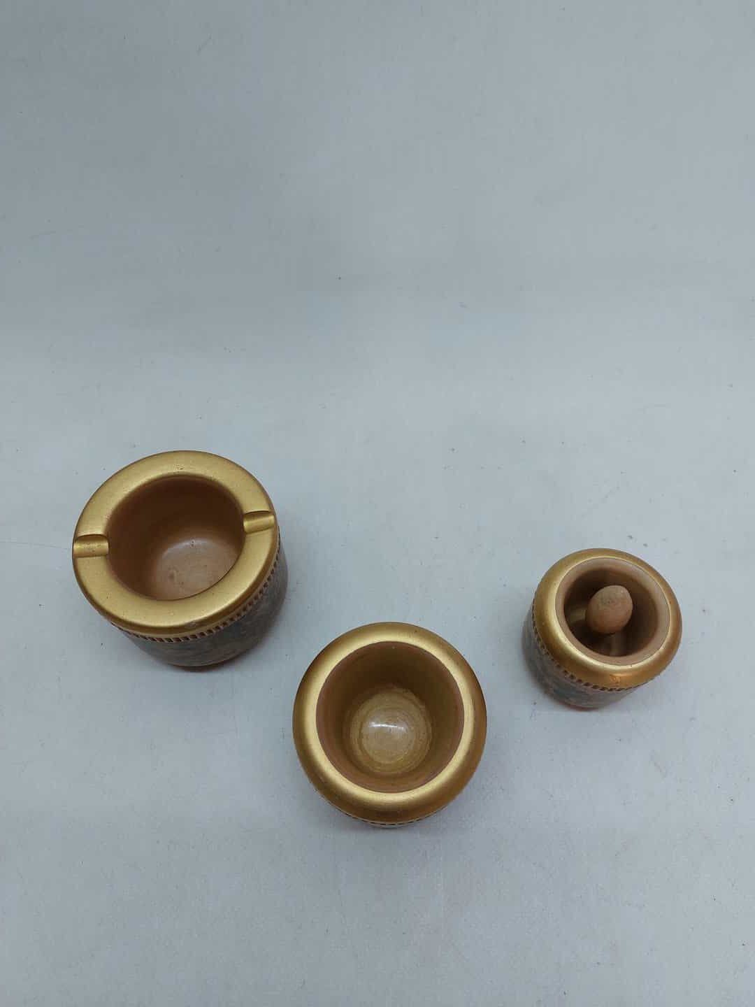 Σετ καπνού Φλωρεντίας, του 1960. Διαστάσεις: Δίσκος 17x23cm, σταχτοδοχείο 7x8cm, κηροπήγια 7x7cm και 6,5×5,5cm