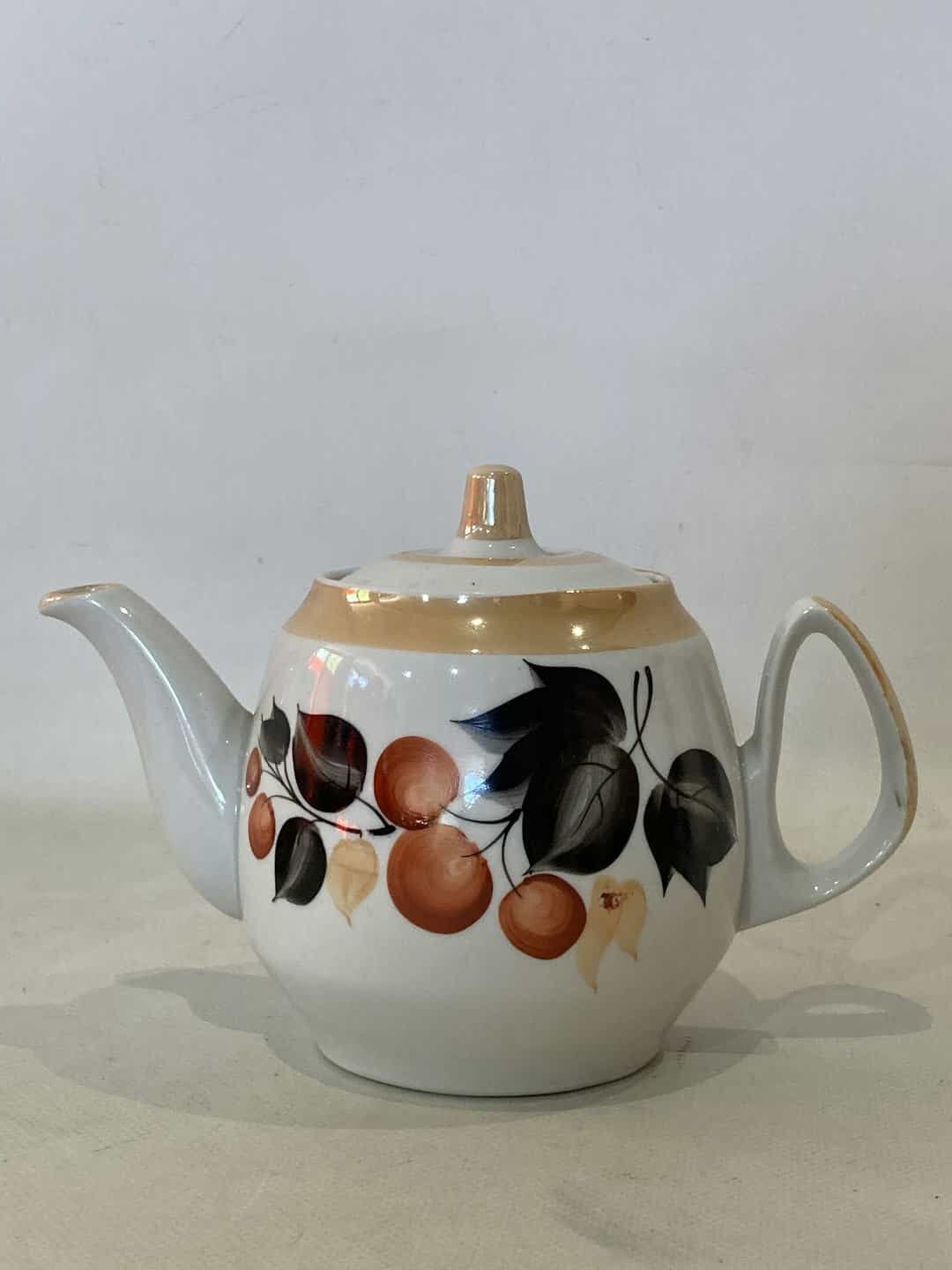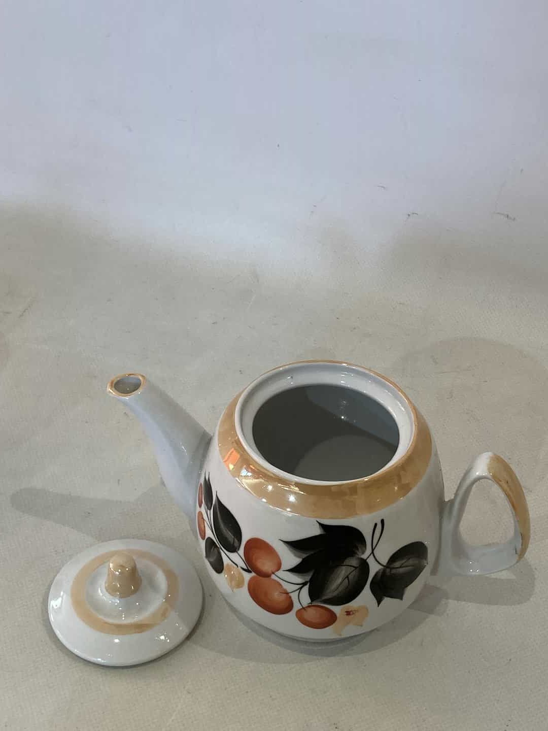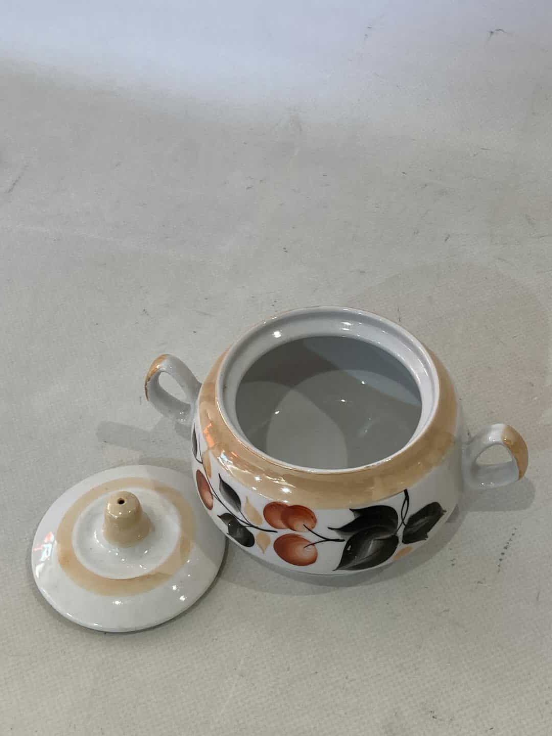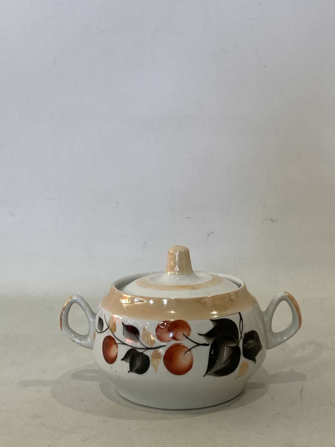 Σετ τσιαγερό vintage πορσελάνινο αποτελείται από 14 τεμάχια . Διαστάσεις Τσαγιέρα 15×19 /Ζαχαριέρα 10X15 /6 Φλιτζάνια 6x11x9 /6 Πιάτα 14×14. Με χρυσές λεπτομέρειες . Υπάρχει φθορά στο ένα φλιτζάνι έχει σπασμένο το χερουλάκι Κωδικός προϊόντος: #s9915