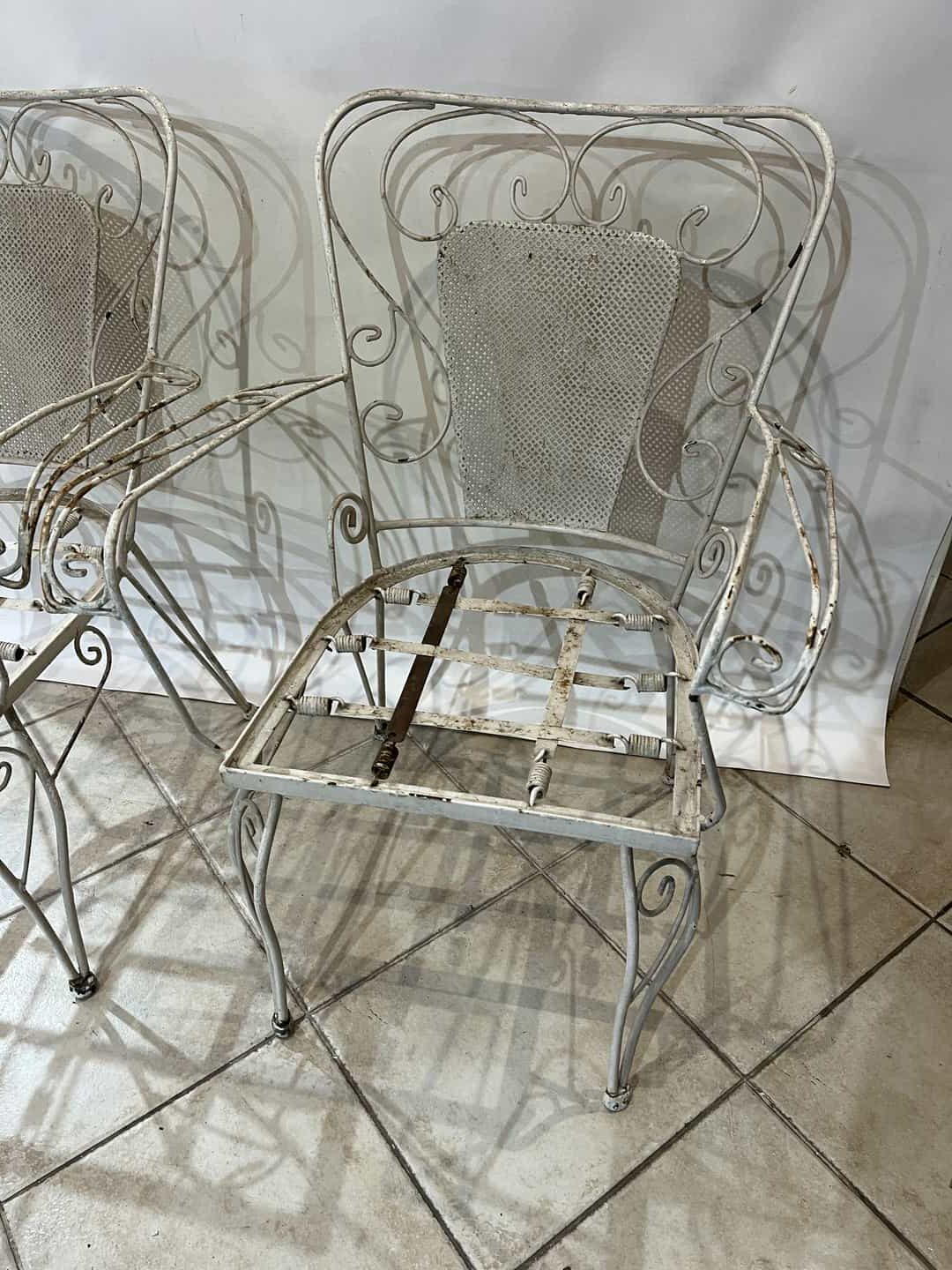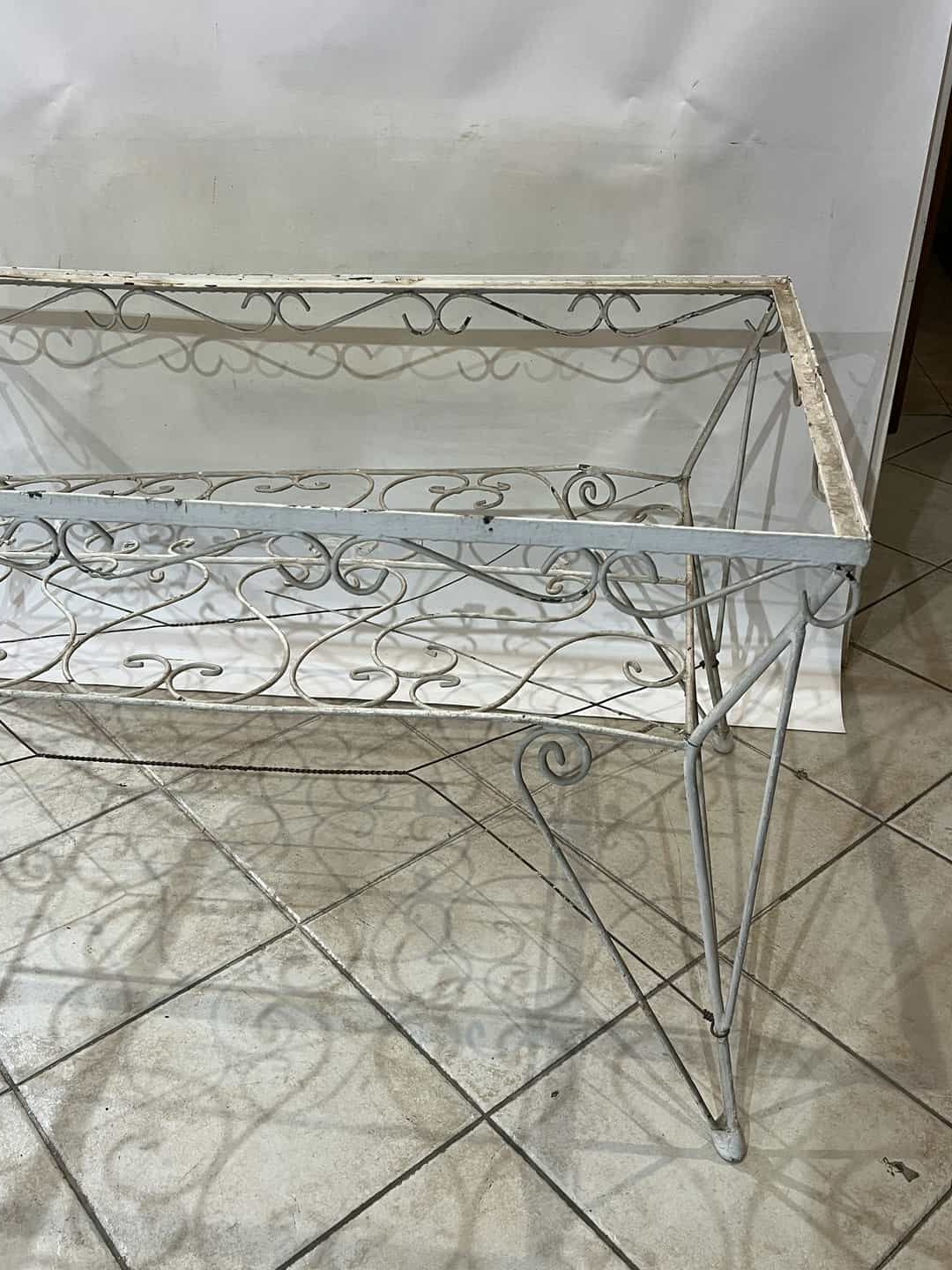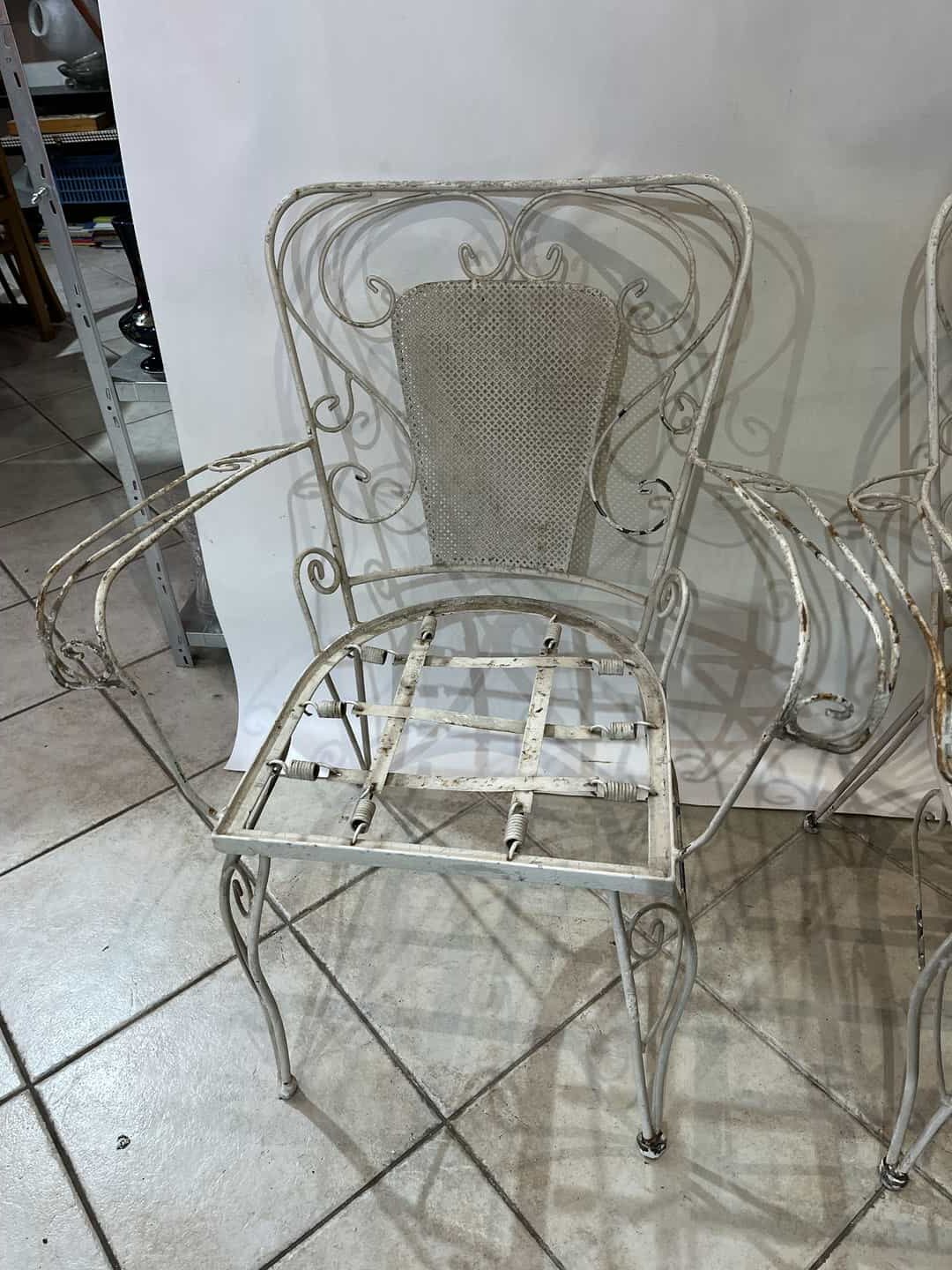 Σετ φερ φορζέ τραπέζι χωρίς τζάμι με 6 καρέκλες. Διαστάσεις τραπεζιού: 65x120x65 , καρέκλα: 84x62x47 . Η τιμή είναι χαμηλή γιατί χρήζει συντήρηση, καθώς κάποια σίδερα είναι στραβά και υπάρχει σπάσιμο στο ένα μπράτσο της καρέκλας Κωδικός προϊόντος: #s15661
