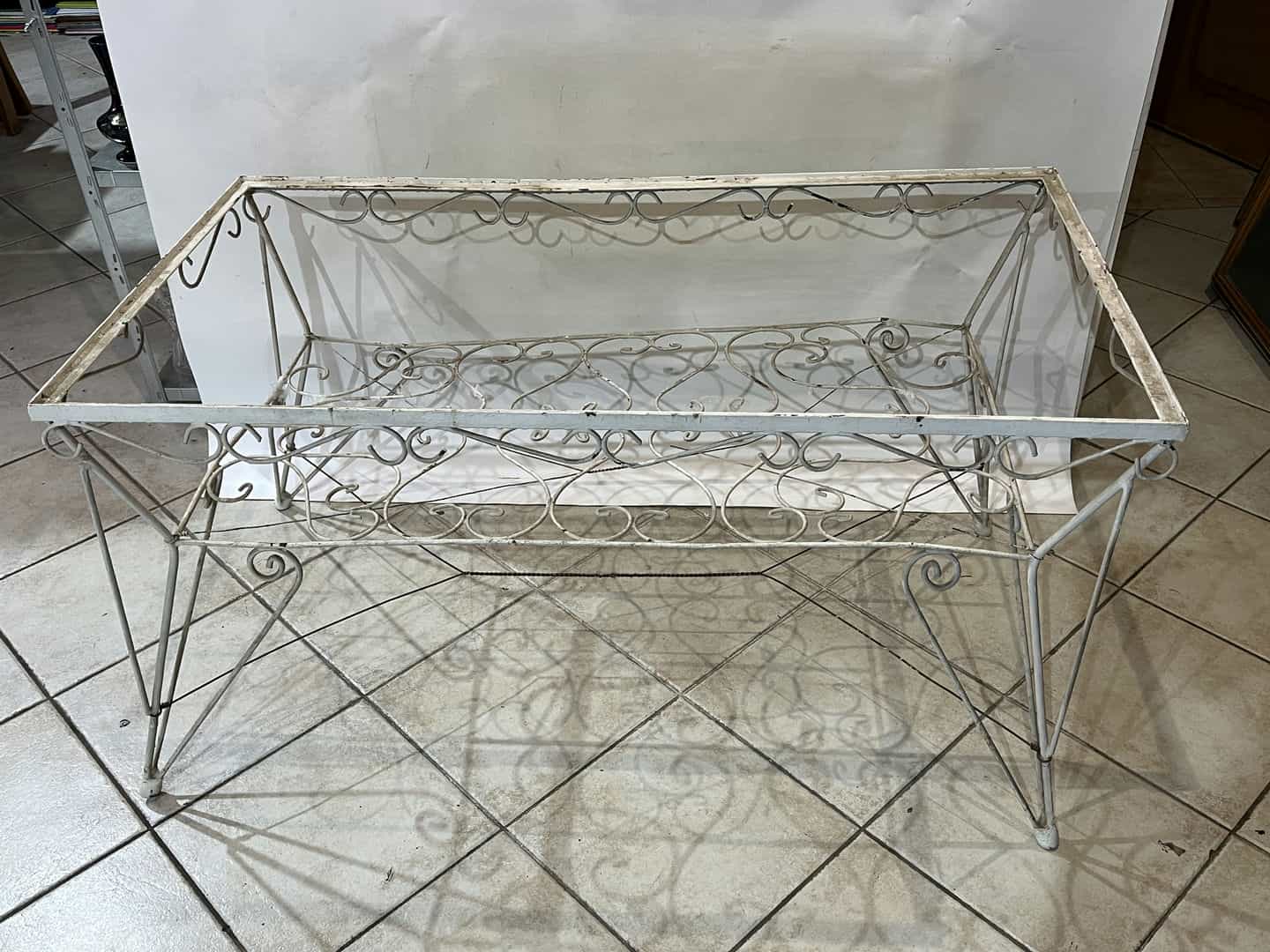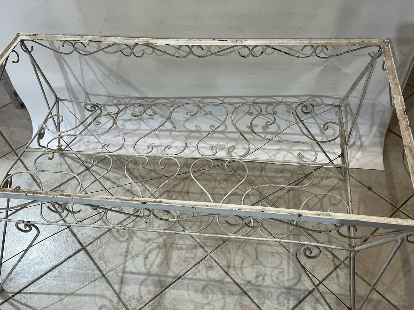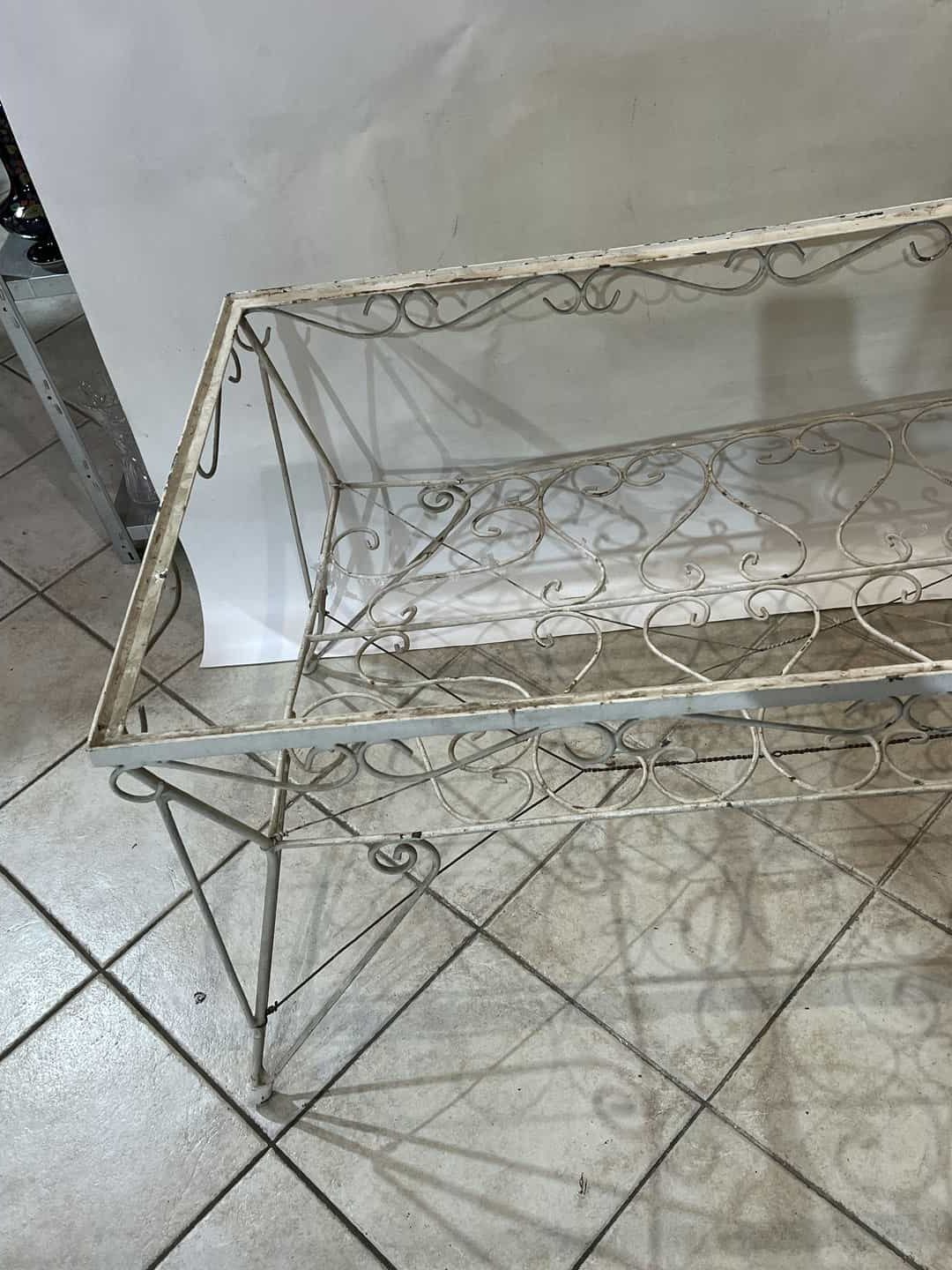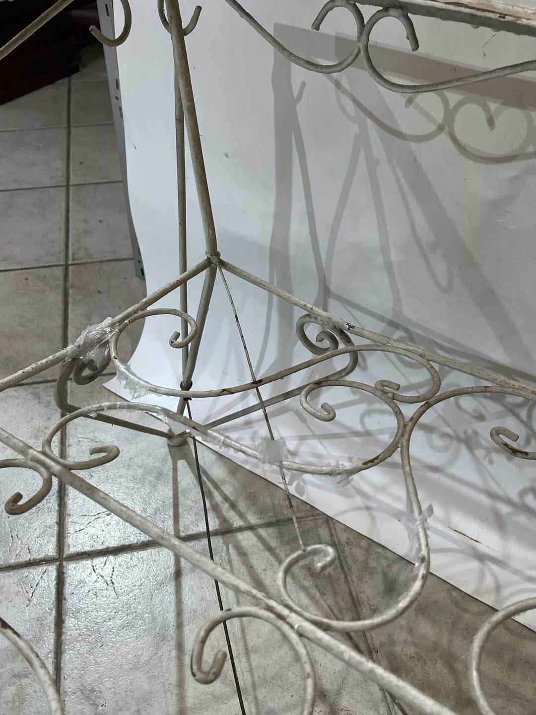 Σετ φερ φορζέ τραπέζι χωρίς τζάμι με 6 καρέκλες. Διαστάσεις τραπεζιού: 65x120x65 , καρέκλα: 84x62x47 . Η τιμή είναι χαμηλή γιατί χρήζει συντήρηση, καθώς κάποια σίδερα είναι στραβά και υπάρχει σπάσιμο στο ένα μπράτσο της καρέκλας Κωδικός προϊόντος: #s15661
